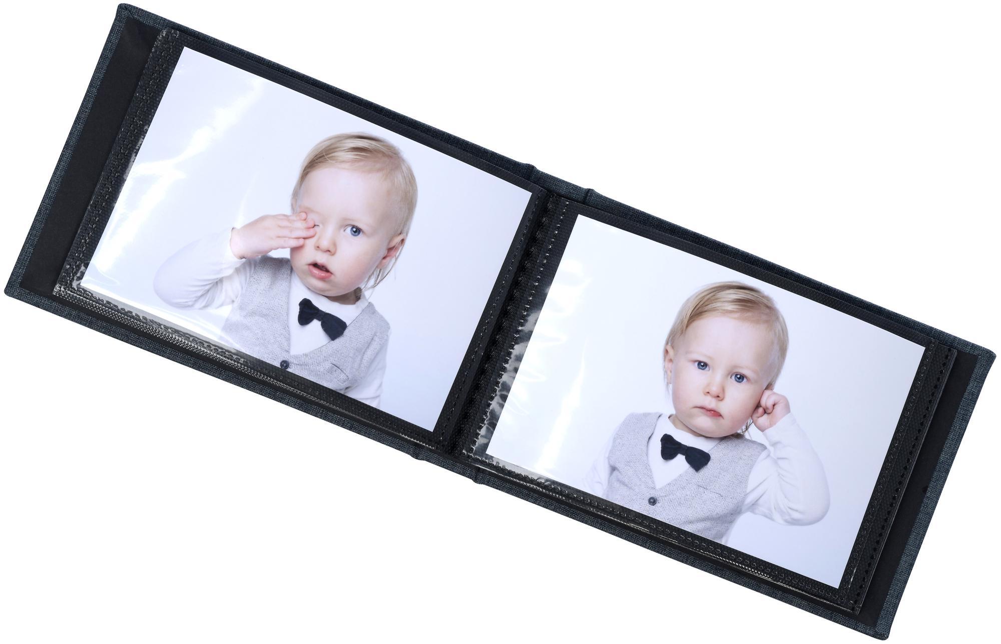 Dieses Album im Mini-Format ist perfekt, wenn du einen Ort für deine Erinnerungen suchst, der nicht zu viel Platz beansprucht. Das Cover ist mit schwarzem Textil bezogen und im Album bieten 36 Fototaschen Platz für deine Bilder in der Größe 10x15 cm.