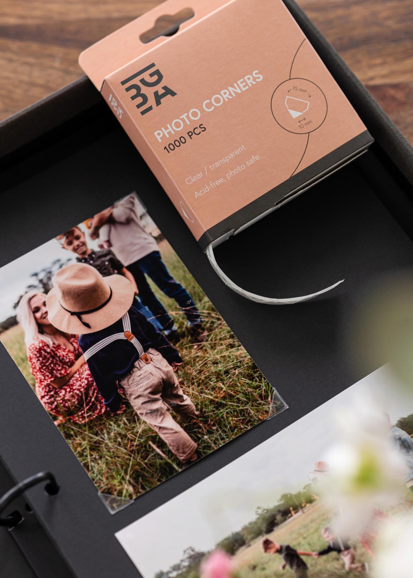 Fotoecken sind optimal, wenn Fotos in ein Fotoalbum geklebt werden sollen, ohne Kleber oder Leim zu verwenden. Die Fotocken werden, wie der Name schon sagt, in die Ecken der Bilder geklebt, sodass die Fotos an den empfindlichsten Stellen befestigt und damit besser gegen Knicken o.ä. geschützt sind. Das Ergebnis kann sich sehen lassen: Einfach praktisch und zuverlässig eingeklebte Fotos.