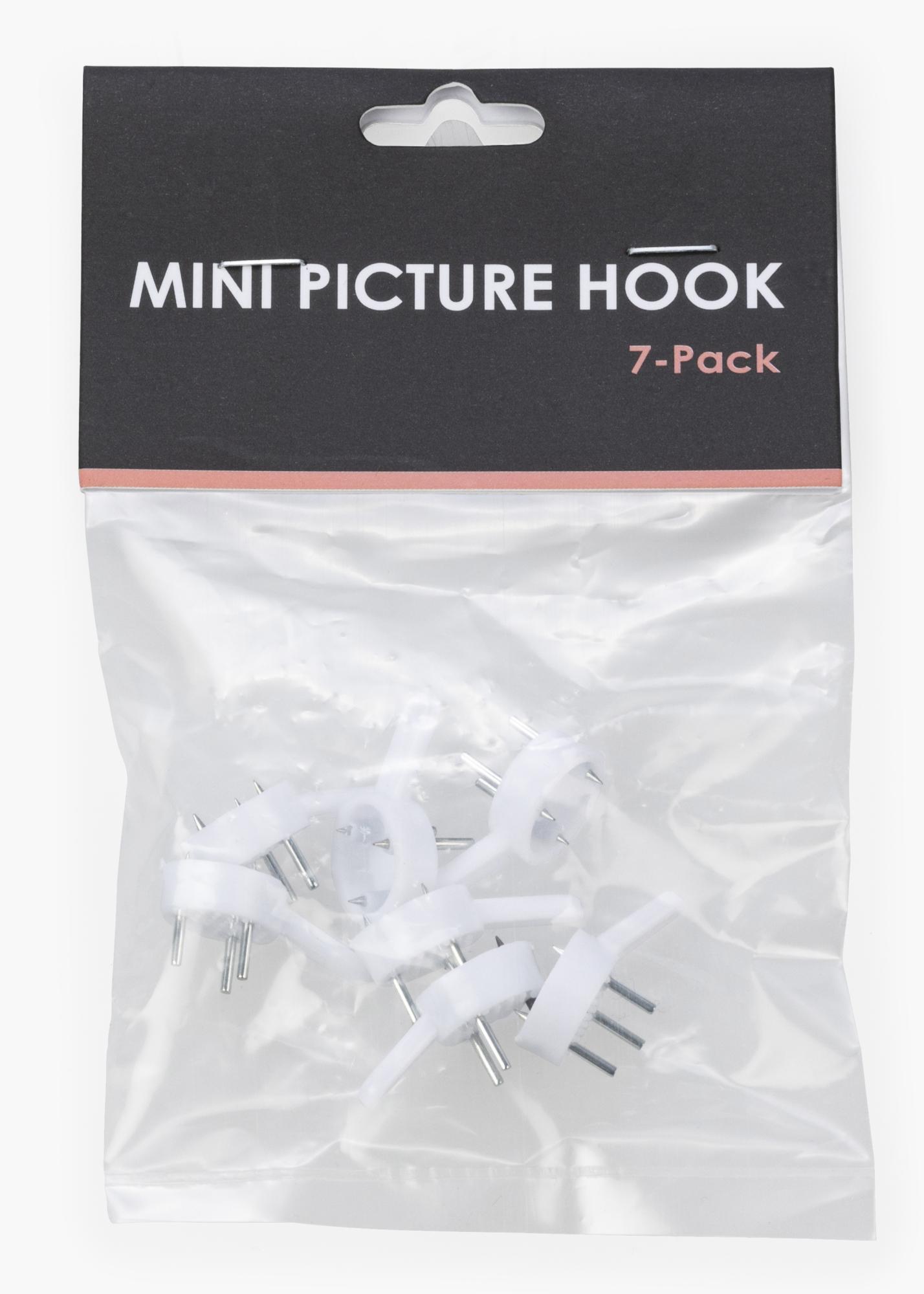 Bilderhaken für die Befestigung an Betonwänden. Kein mühsames Bohren oder Hantieren mit Dübeln nötig. Diese kleine Bilderhaken-Größe passt ausgezeichnet für das Aufhängen leichterer Bilderrahmen oder sonstiger Wanddekoration von geringerem Gewicht. Wird mit dem Haken nach oben zeigend befestigt. Erhältlich im 7er-Pack.