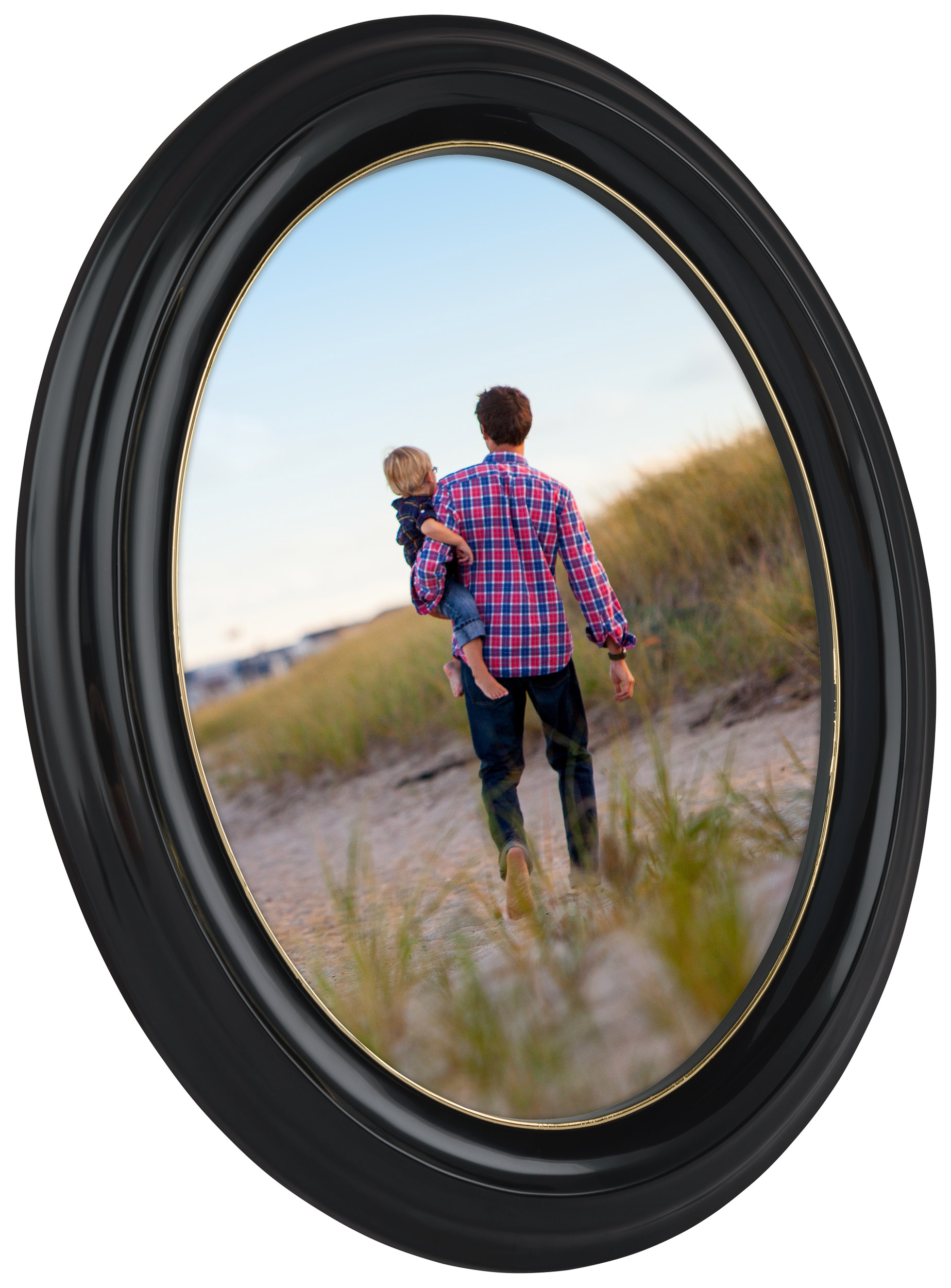 Eiri Mozart ist ein schicker ovaler Fotorahmen, der in Finnland hergestellt wird, was eine sehr hohe Qualität garantiert. Abgesehen von einer dünnen Goldkante direkt neben dem Motiv ist der Bilderrahmen vollständig in Schwarz gehalten.