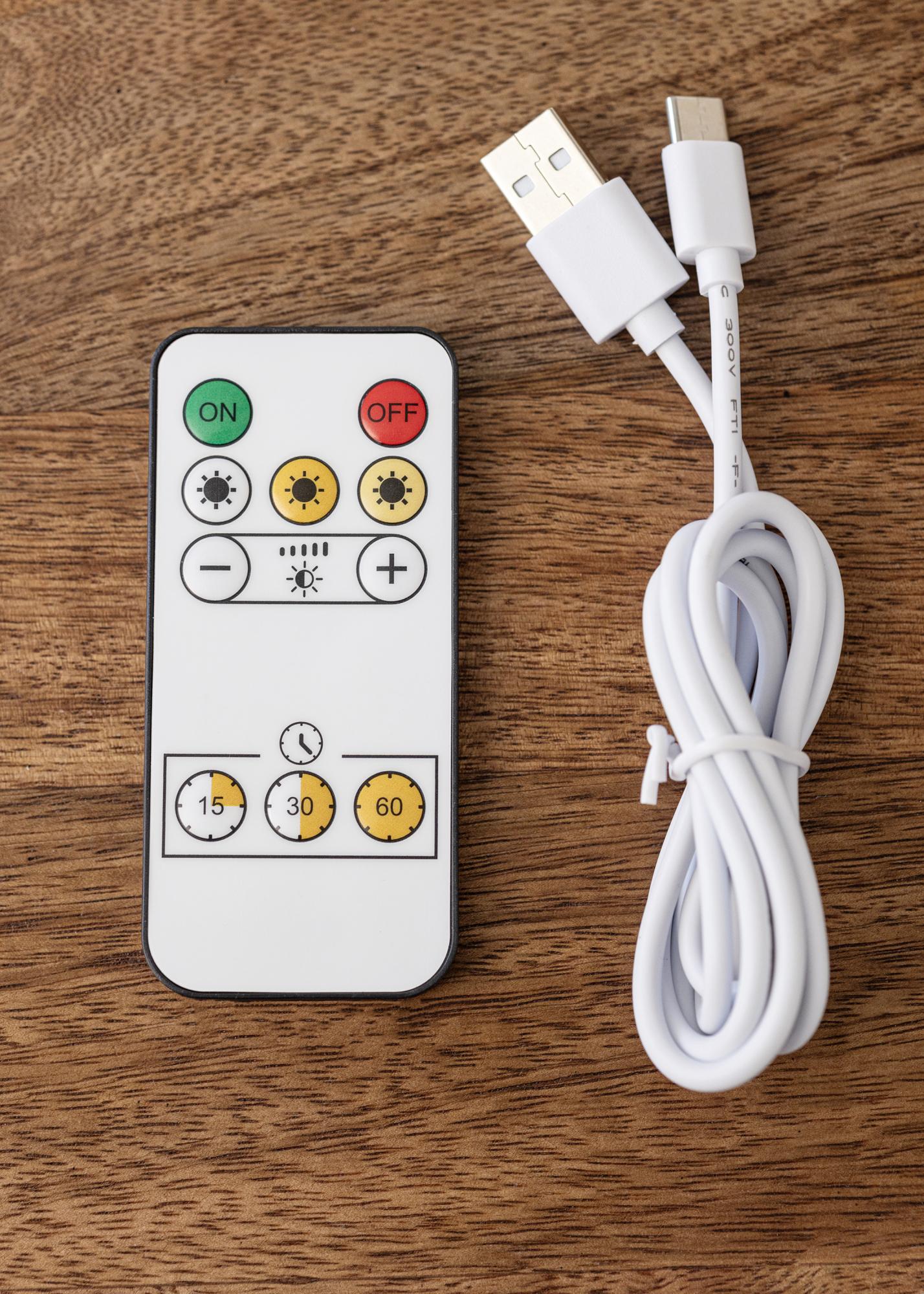 Das weiße, stilvolle Design fügt sich in die meisten Innenräume ein und sorgt für einen modernen Eindruck. Die Beleuchtung wird mit einer mitgelieferten Fernbedienung gesteuert, die es einfach macht, die Helligkeit anzupassen und einen Timer für die automatische Abschaltung nach 15, 30 oder 60 Minuten einzustellen. Dies ermöglicht es, die Lebensdauer der Batterie zu optimieren und die Beleuchtung an Ihre Bedürfnisse anzupassen.