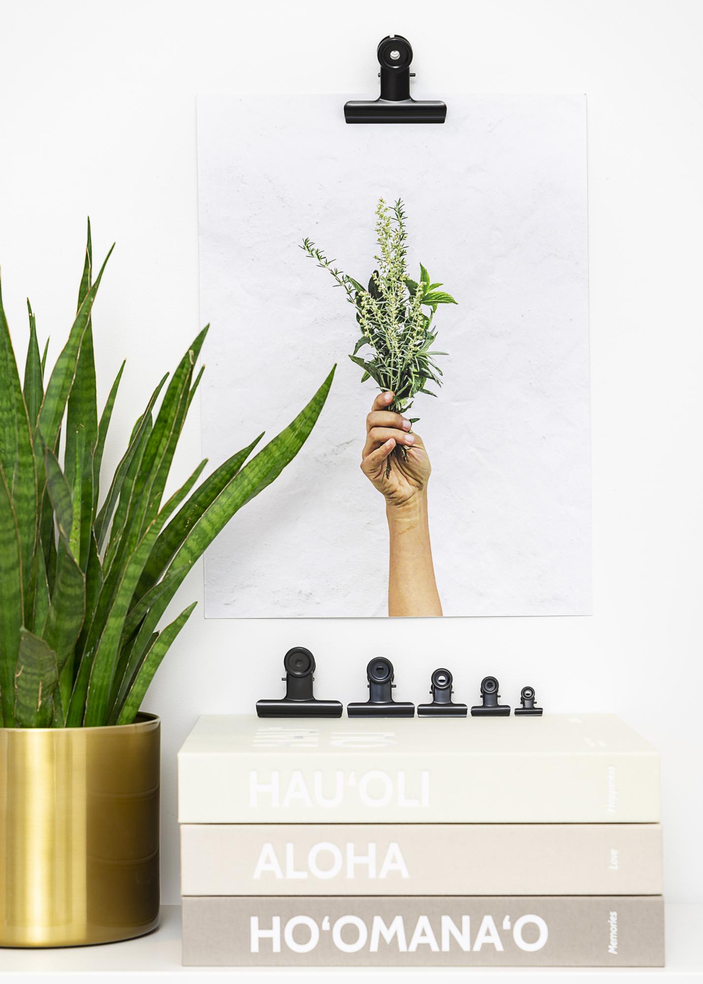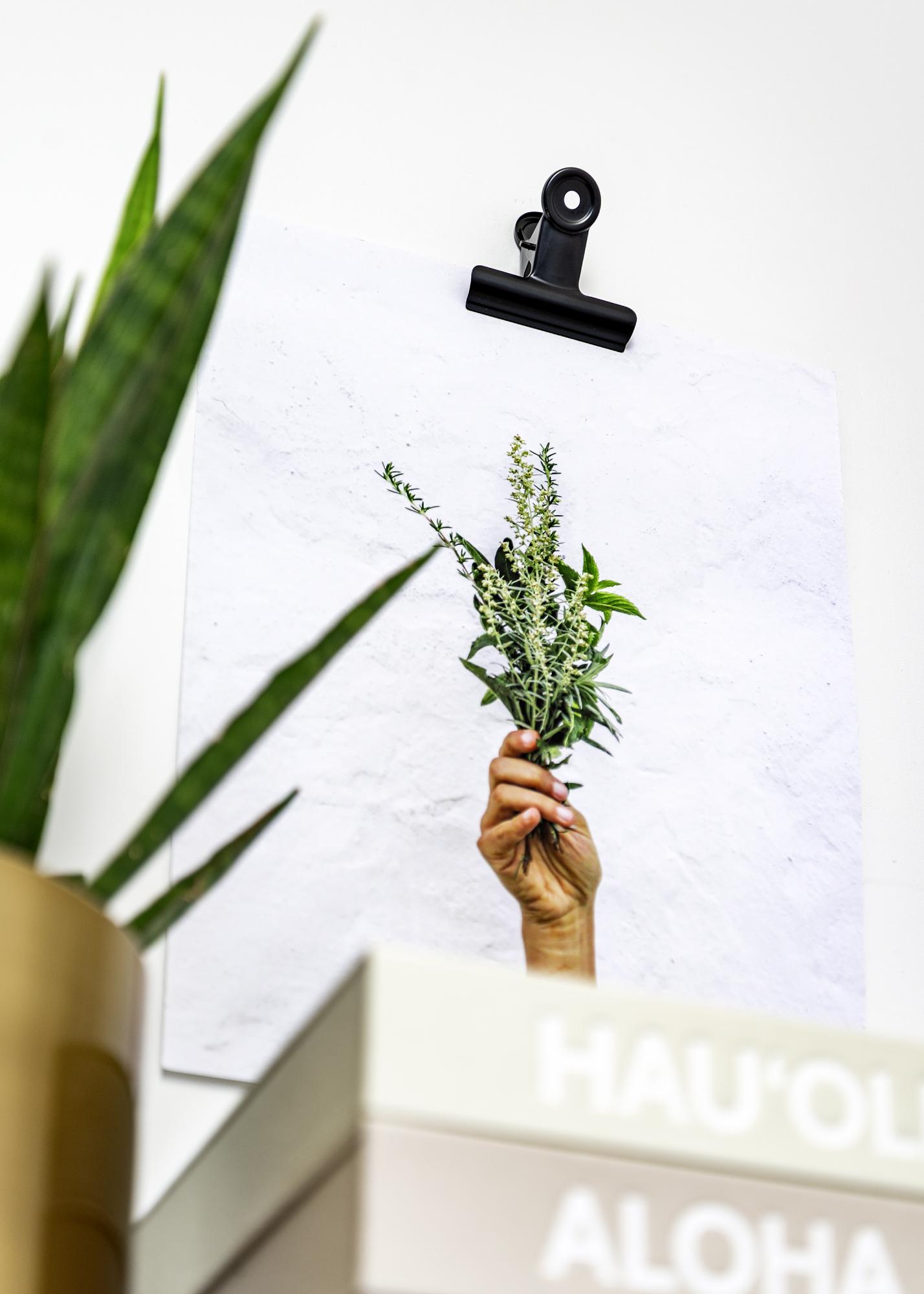 Schwarze Metallklammer mit hübschem, mattschwarzen Finish. Eignet sich für das Aufhängen von Postern, Kunstdrucken, zum Festklemmen von Papier etc. Trendy Posterclip, der toll aussieht. Die Metallklammer ist stark genug, auch sehr dünnes Papier zuverlässig zu halten und kann auch für das Aufhängen von größeren Postern verwendet werden. Bei großen Postern empfiehlt sich allerdings für die Aufhängung zwei oder mehr Posterklammern zu verwenden. Das hübsche, stilvolle Design zeichnet diese Posterclips aus. Die Löcher in den runden Enden der Clips machen die Befestigung an der Wand mit Hilfe einer kleinen Schraube oder eines Nagels sehr einfach.