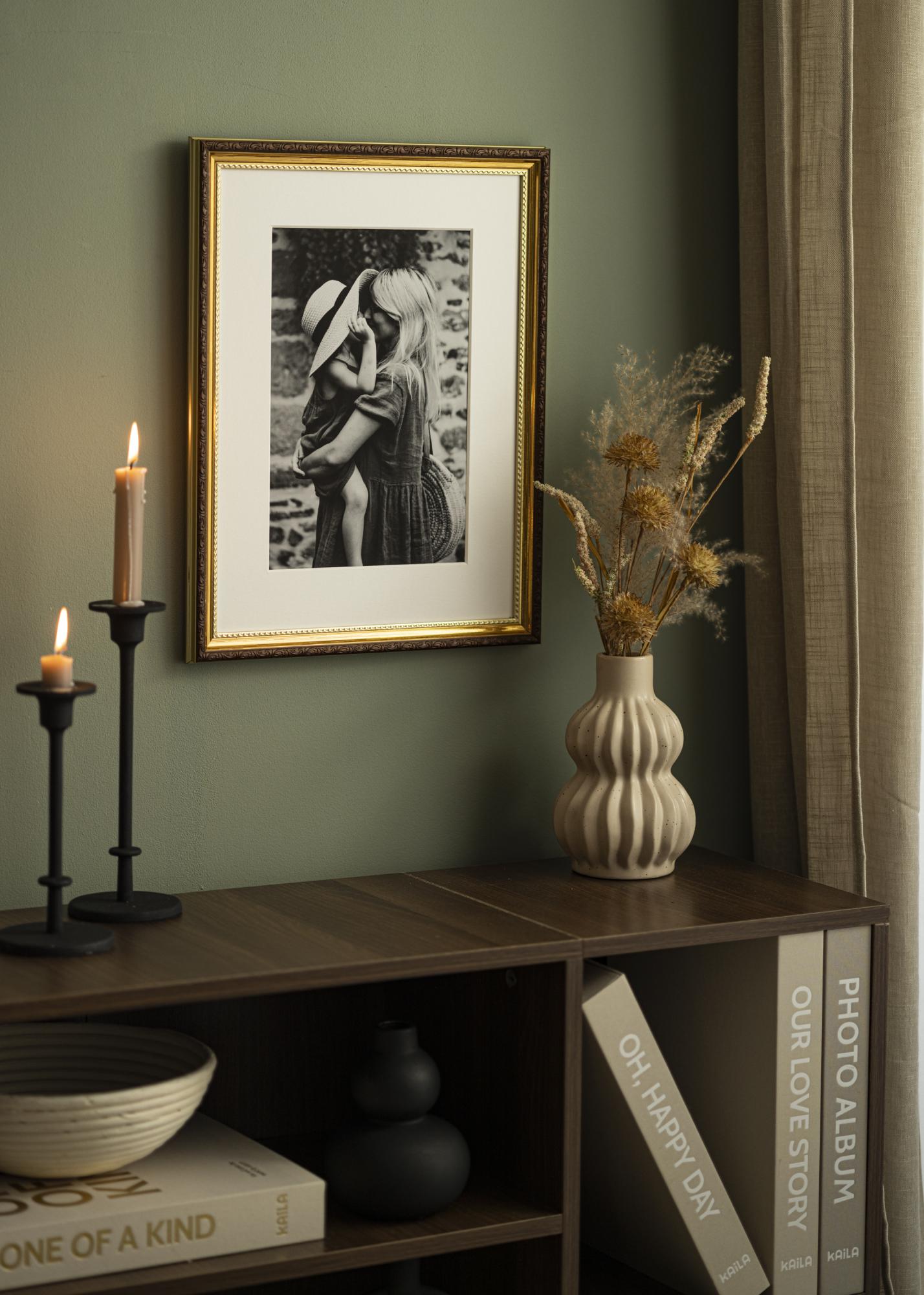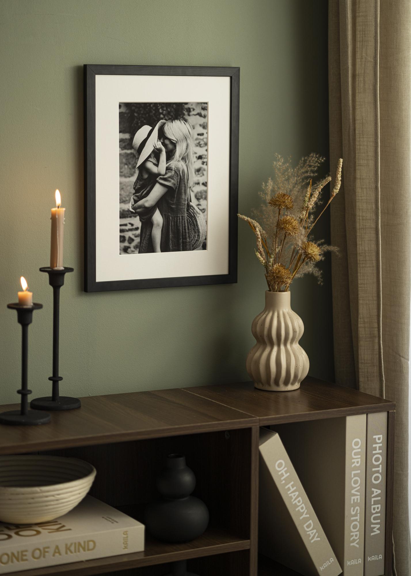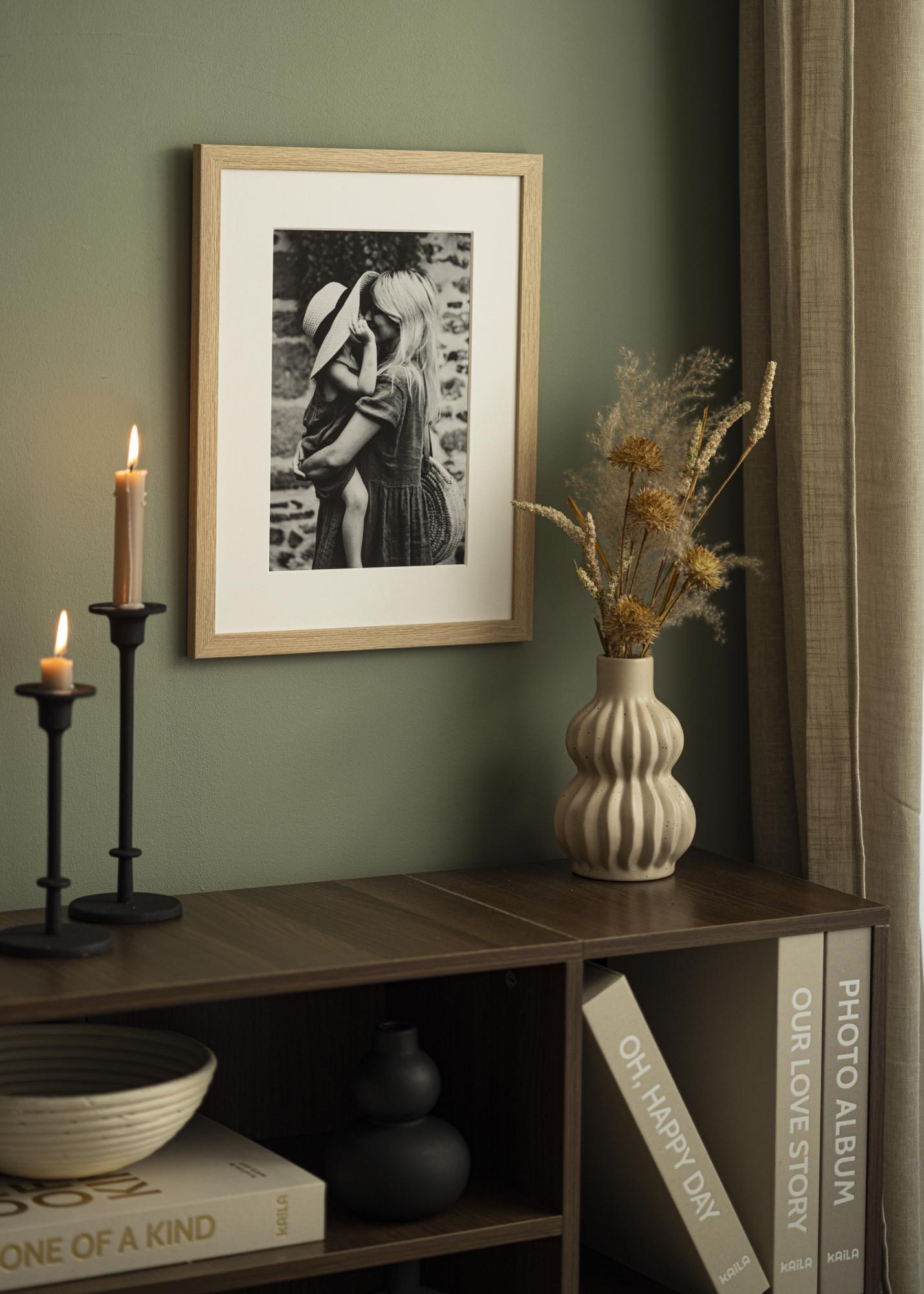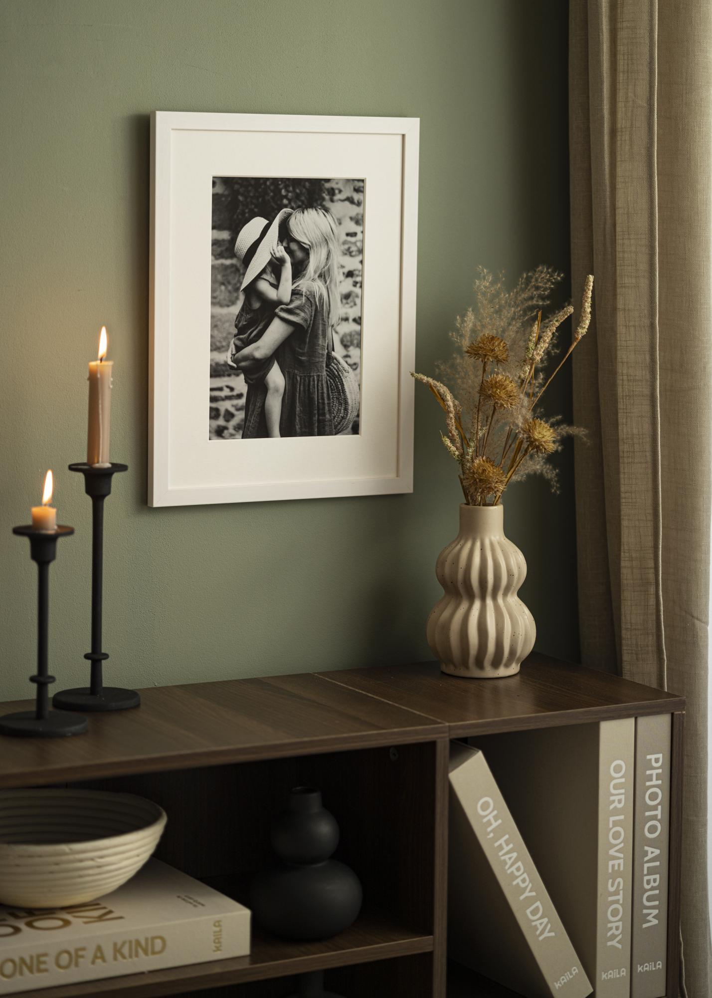 Mit einem weißen Passepartout wird ein neutraler Eindruck erzeugt, der das Motiv in den Mittelpunkt stellt. Hellt das Motiv auf und lässt es luftig wirken.