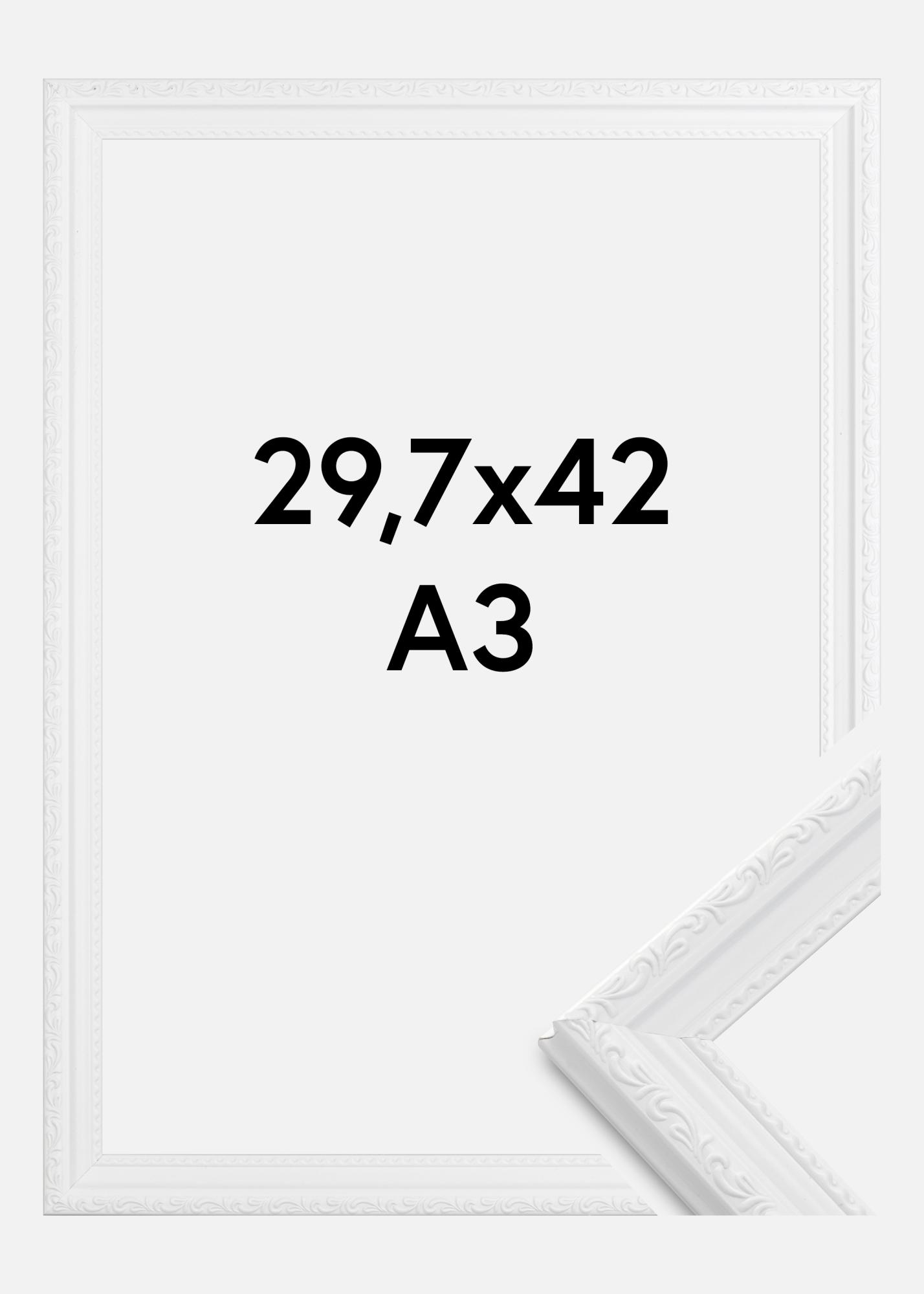 Abisko Weiß ist ein eleganter Fotorahmen im Retro-Stil mit feinen Verzierungen. Die perfekte Wahl, wenn du auf der Suche nach einem weißen Bilderrahmen im älteren Stil bist.
