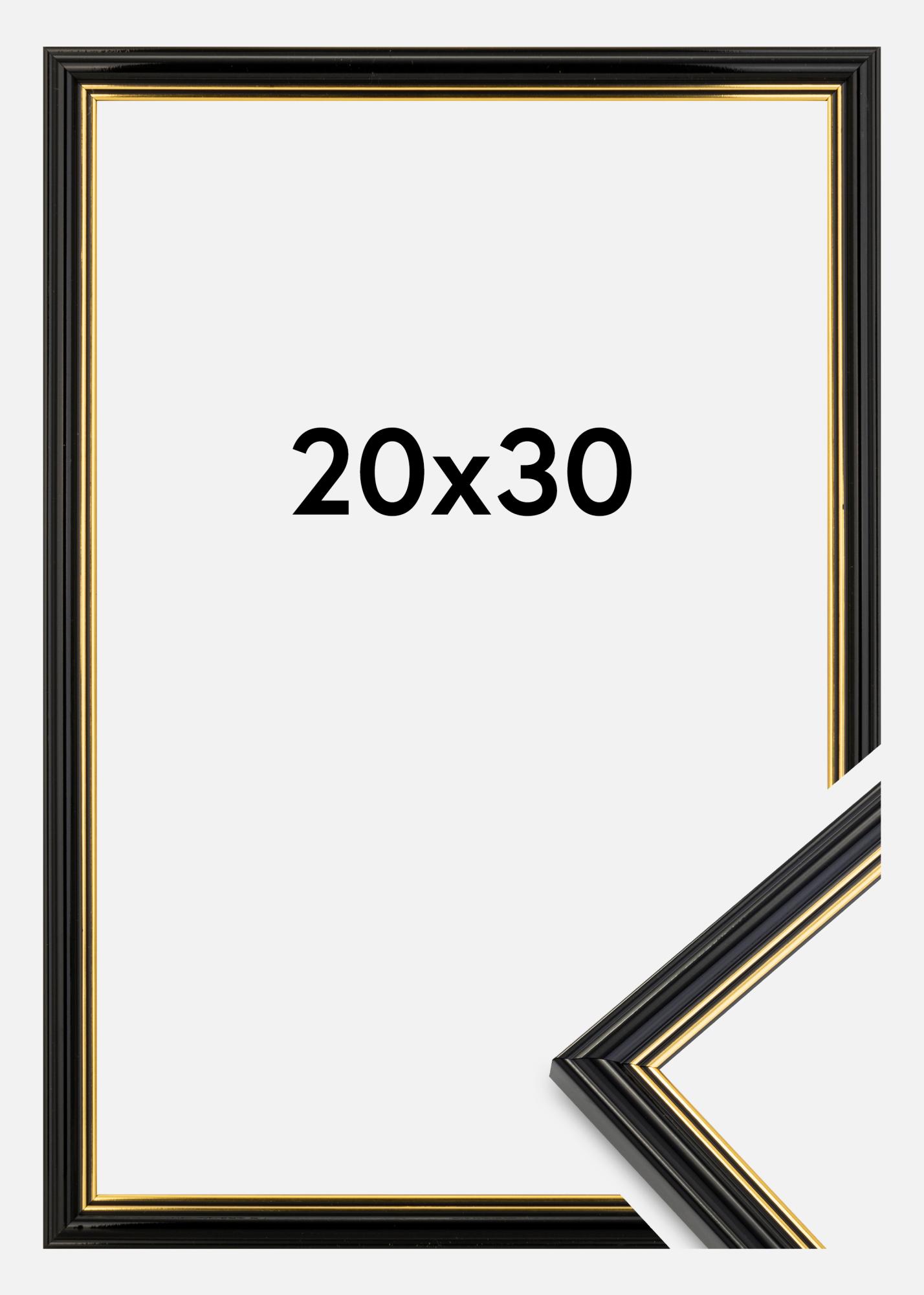 Wenn du auf der Suche nach einem klassischen Bilderrahmen mit elegantem Look zu einem guten Preis bist, dann ist "Classic Schwarz" genau das Richtige für dich. Mit seinem schwarzen, abgerundeten Profil, das mit zwei dünnen, goldfarbenen Linien verziert ist, passt dieser
