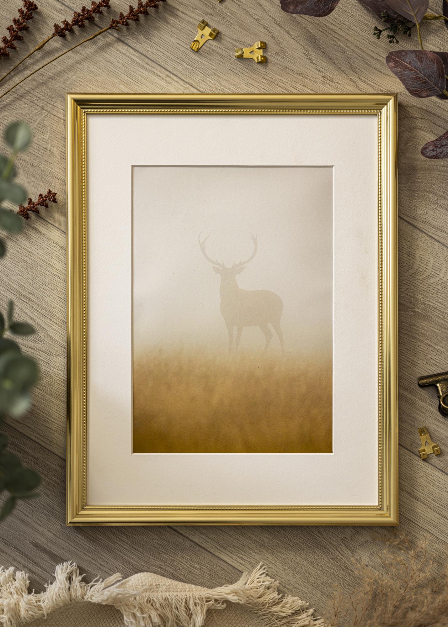 Mit den Maßen 21 x 29,7 cm ist dieser Bilderrahmen perfekt für die Standardgröße A4, was ihn zu einem idealen Begleiter für Zertifikate, Fotografien oder feine Ausdrucke macht. Lassen Sie diesen Goldrahmen Teil Ihrer Inneneinrichtung werden und verleihen Sie Ihren Wänden ein luxuriöses Gefühl.