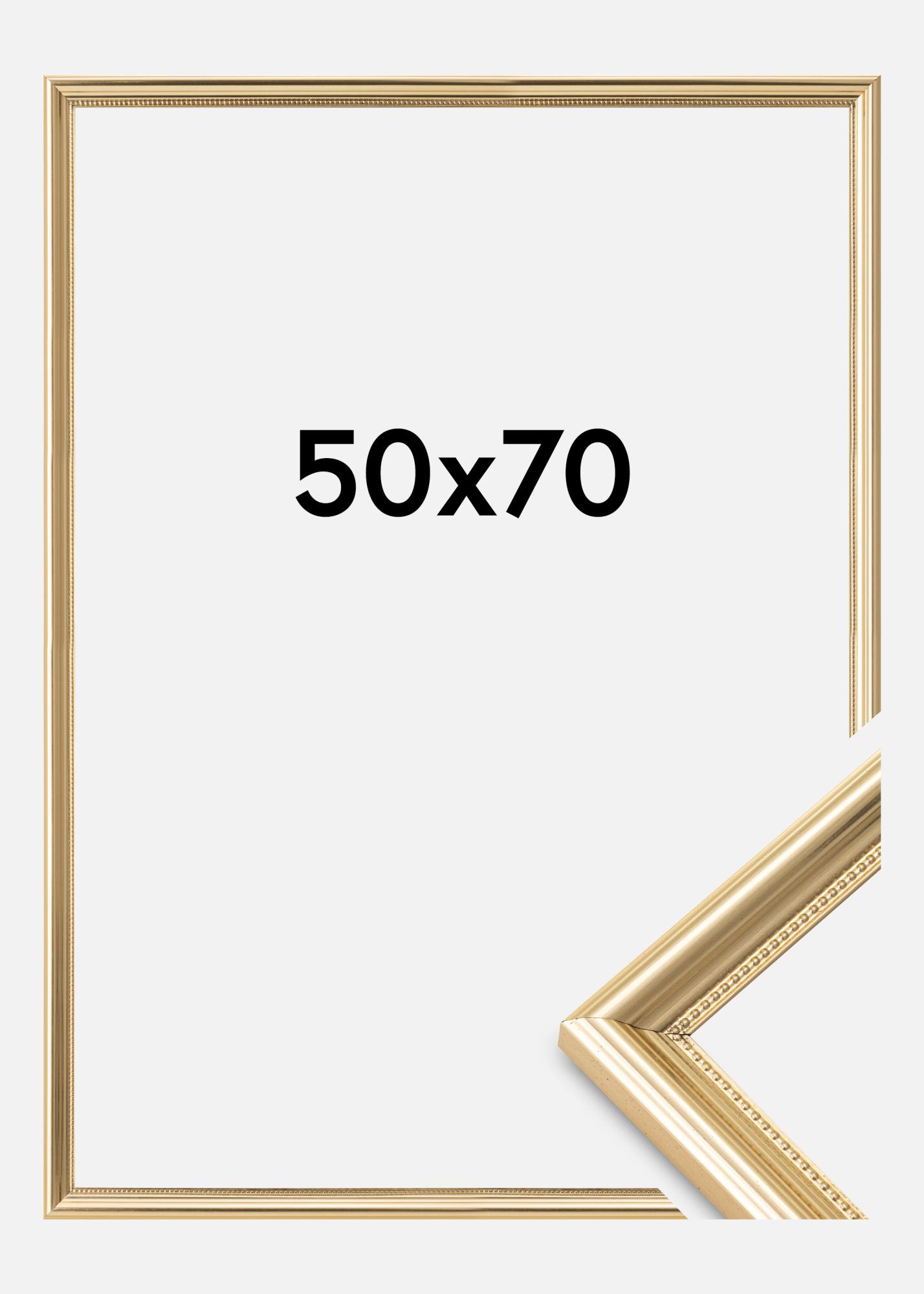 Verleihen Sie Ihren Wänden mit diesem 50x70 cm Goldrahmen eine elegante Note. Der goldfarbene, profilierte Rahmen mit einer Breite von 20 mm verleiht jedem Raum ein luxuriöses Gefühl. Die glänzende Oberfläche des Bilderrahmens reflektiert das Licht wunderschön und sorgt für eine raffinierte Atmosphäre.