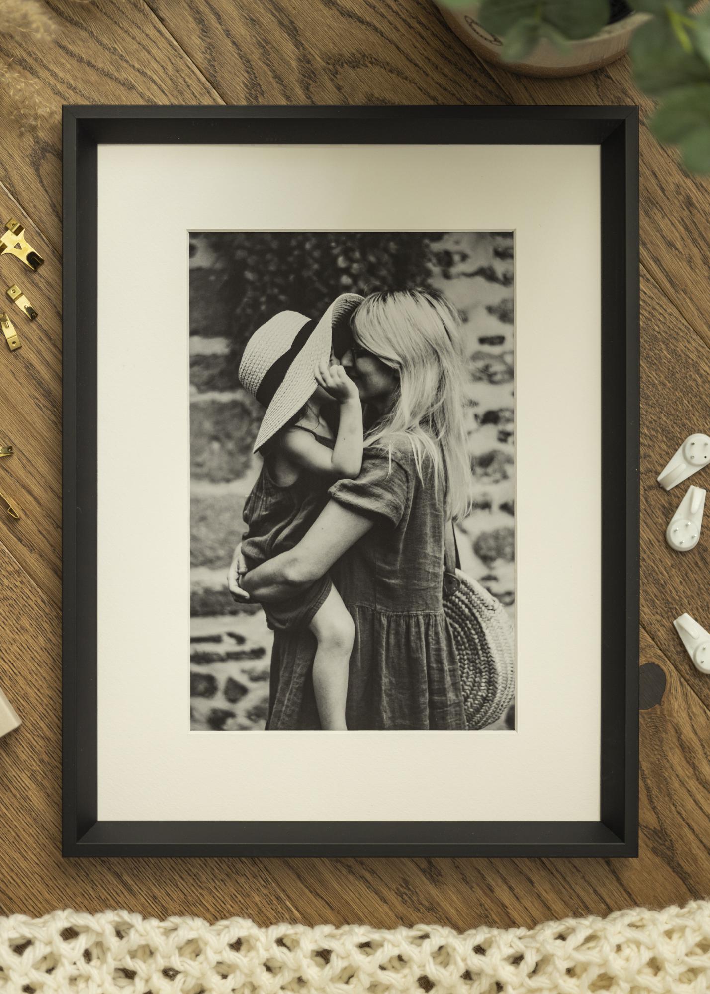 Der Bilderrahmen Globe Acrylglas Schwarz ist ein Holz-Bilderrahmen in schwarzem Farbton mit modernem Profil, designt und hergestellt in Schweden. Die Leistenbreite beträgt 20 mm. Das Rahmenprofil ist in einem 45° Winkel nach innen zum Bildausschnitt hin abgeschrägt, wodurch der Bilderrahmen einen eleganten Ausdruck erhält. Die neutrale, glänzend schwarze Farbgebung dieses schönen Bilderrahmens passt wunderbar zu Bildern in Schwarz-Weiß, zu Bildern in Farbe als auch zu bunten, farbenfreudigen Bildern, Fotos und Gemälden. Dieser schwarze Bilderrahmen ist mit Acrylglas ausgestattet, das eine leichte und bruchfeste Alternative zu echtem Glas bietet.