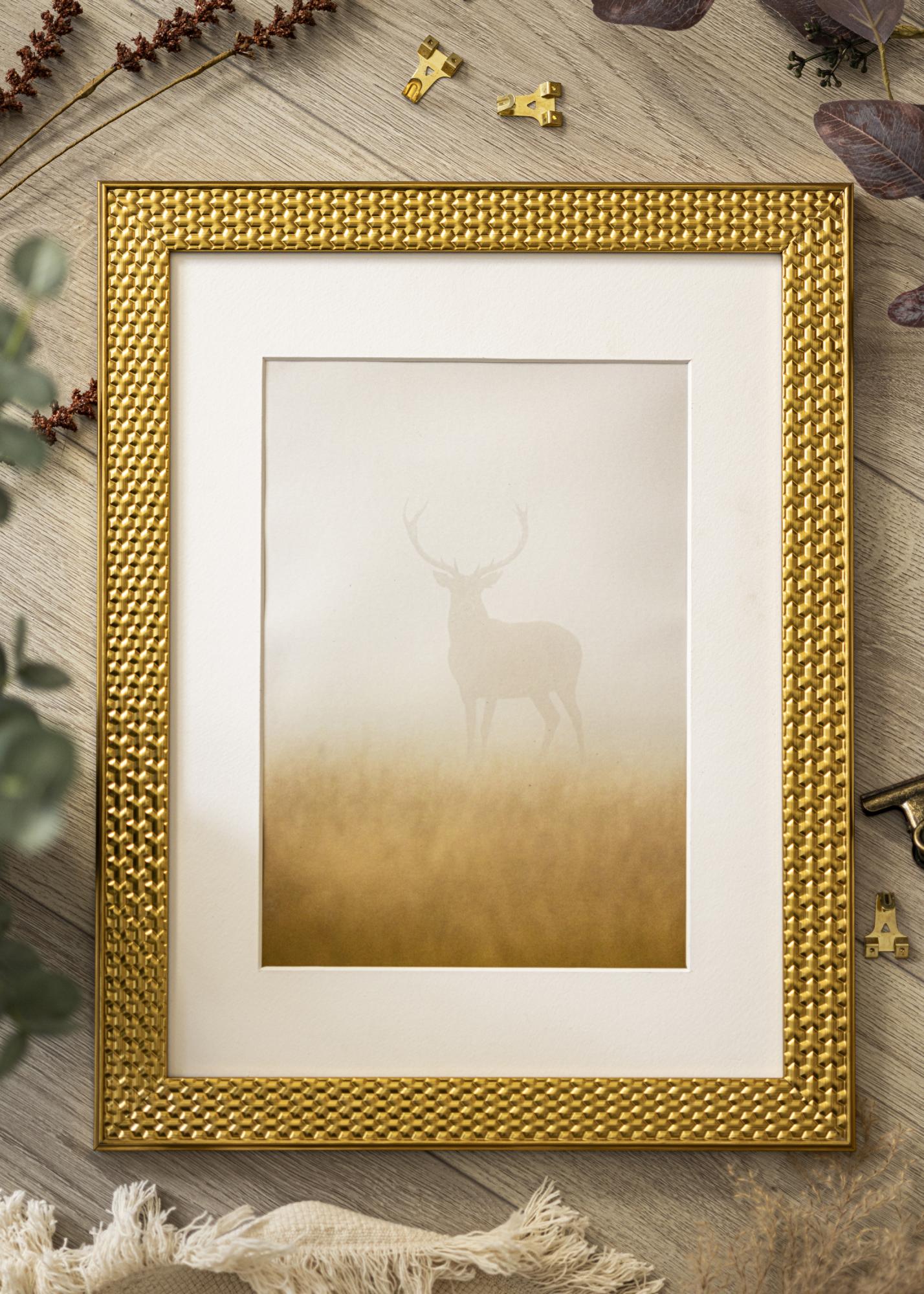 Entdecken Sie den eleganten Charme unseres 30x40 cm goldenen Rahmen im Retro-Stil, ein Bilderrahmen, der wirklich ins Auge sticht. Mit einem Rahmendurchmesser von 35 mm bietet dieser Bilderrahmen eine beeindruckende Präsenz für Ihr ausgewähltes Kunstwerk oder Foto. Die glänzende Oberfläche des Rahmens reflektiert das Licht auf subtile Weise und verleiht dem Raum ein luxuriöses Gefühl.