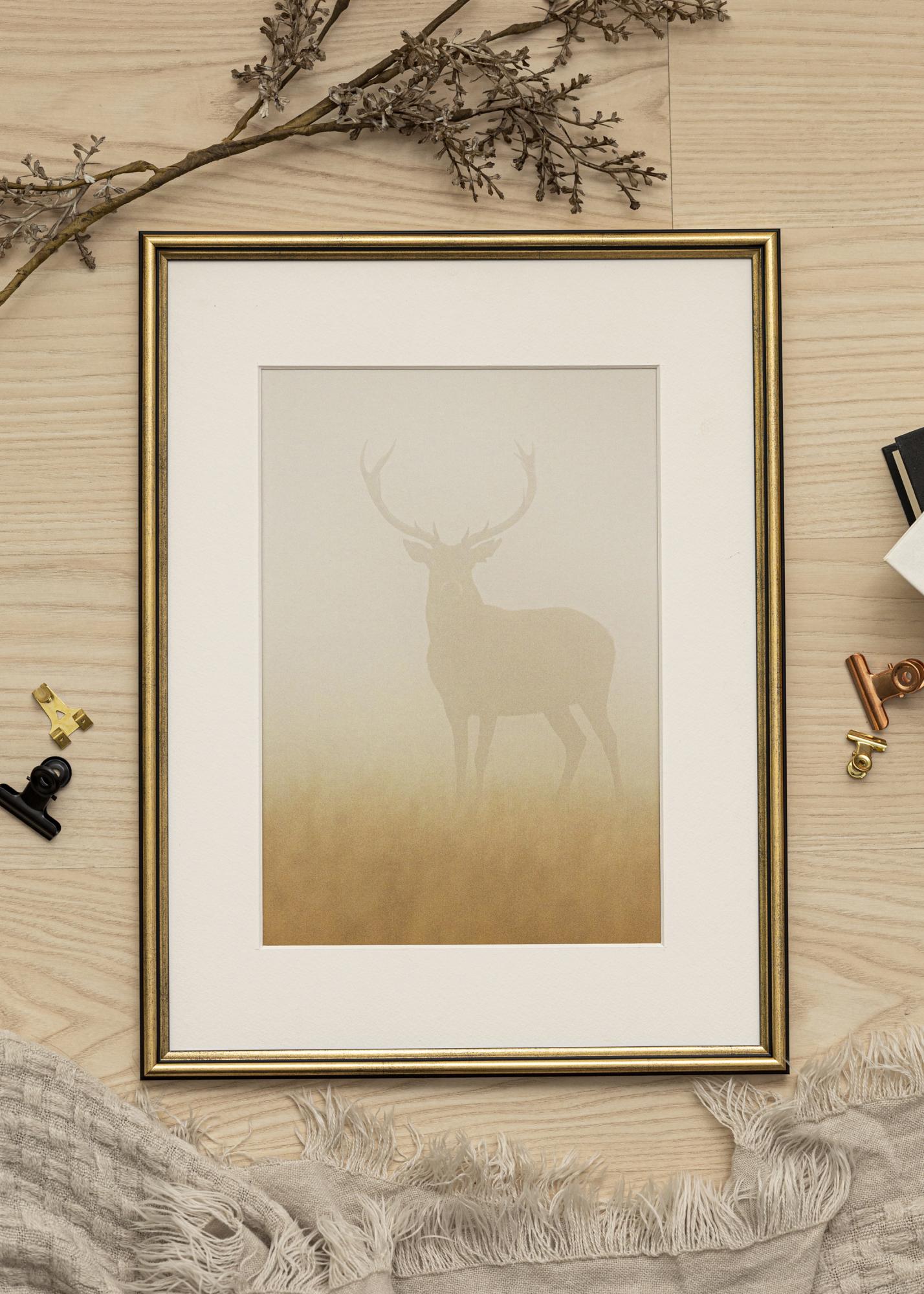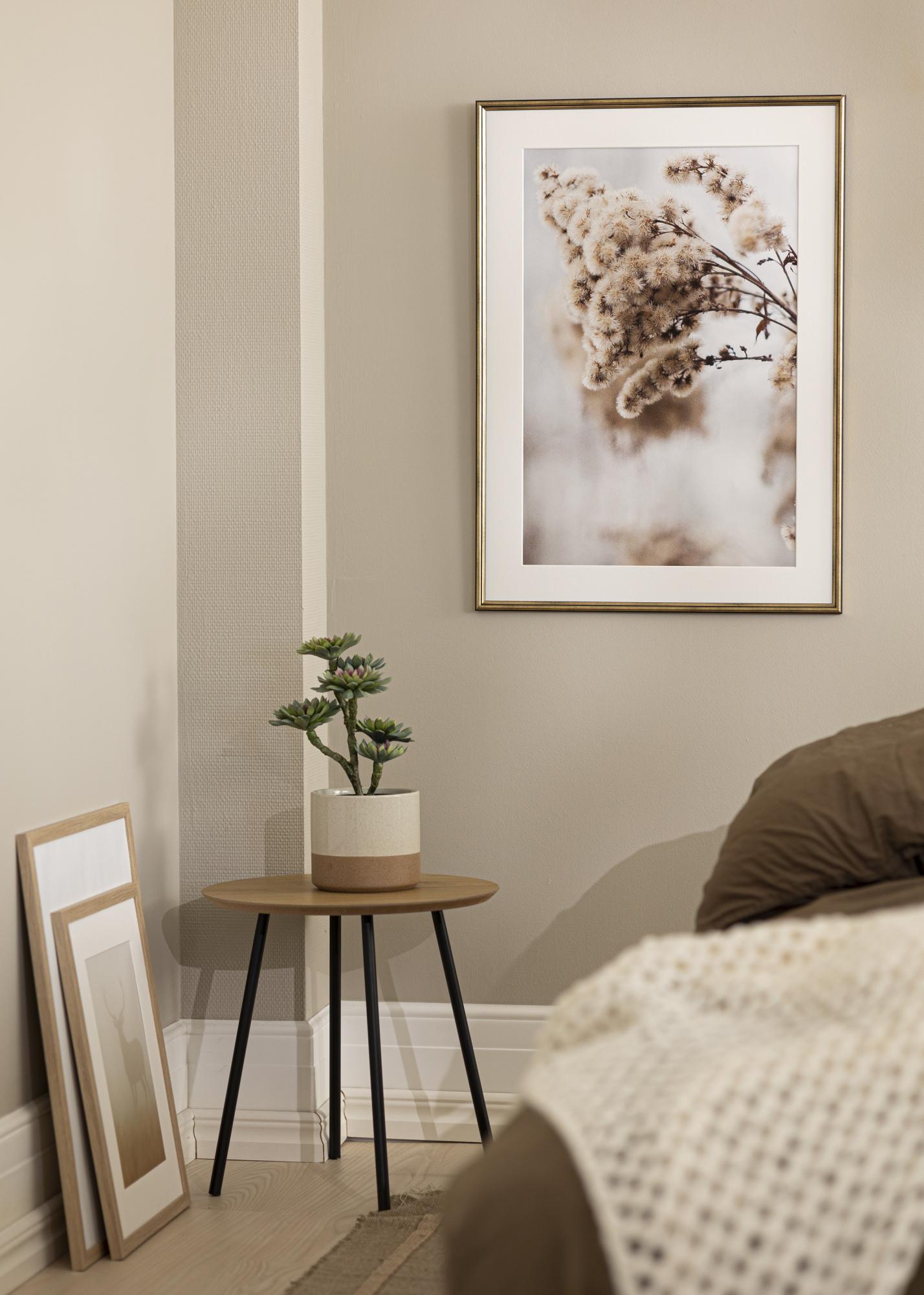 Mit diesem Bilderrahmen ziehen Retro-Feeling und ein Hauch von Luxus in dein Zuhause ein. Gleichzeitig sorgt dieser schöne Bilderrahmen für eine ansprechende Wanddekoration und setzt dein Bildmotiv optimal in Szene. Der in Schweden gefertigte Bilderrahmen Horndal ist ein dekorativer Bilderrahmen mit schwarz gesprenkeltem, goldfarbenem, mattem Finish. Die hübschen Sprenkel sorgen für eine dekorative und doch stilvoll-diskrete Einrahmung, die das Bild in den absoluten Fokus stellt. Die Bilderrahmenleiste ist mit einer Breite von 15 mm sehr schmal gehalten. Sie ist aus Abachi-Holz gefertigt. Das schmale Bilderrahmenprofil trägt zu dem eleganten, noblen Charakter dieses wirklich stilsicheren Bilderrahmens bei.