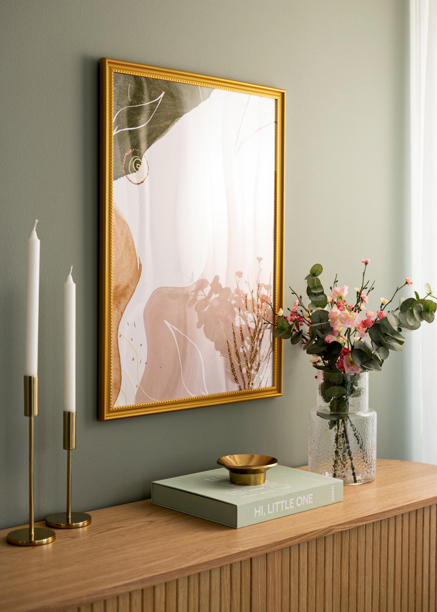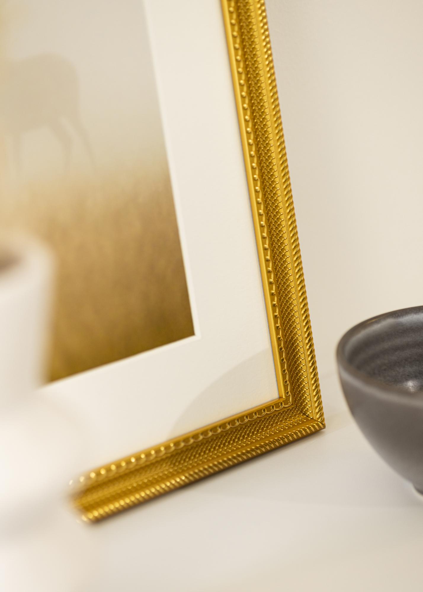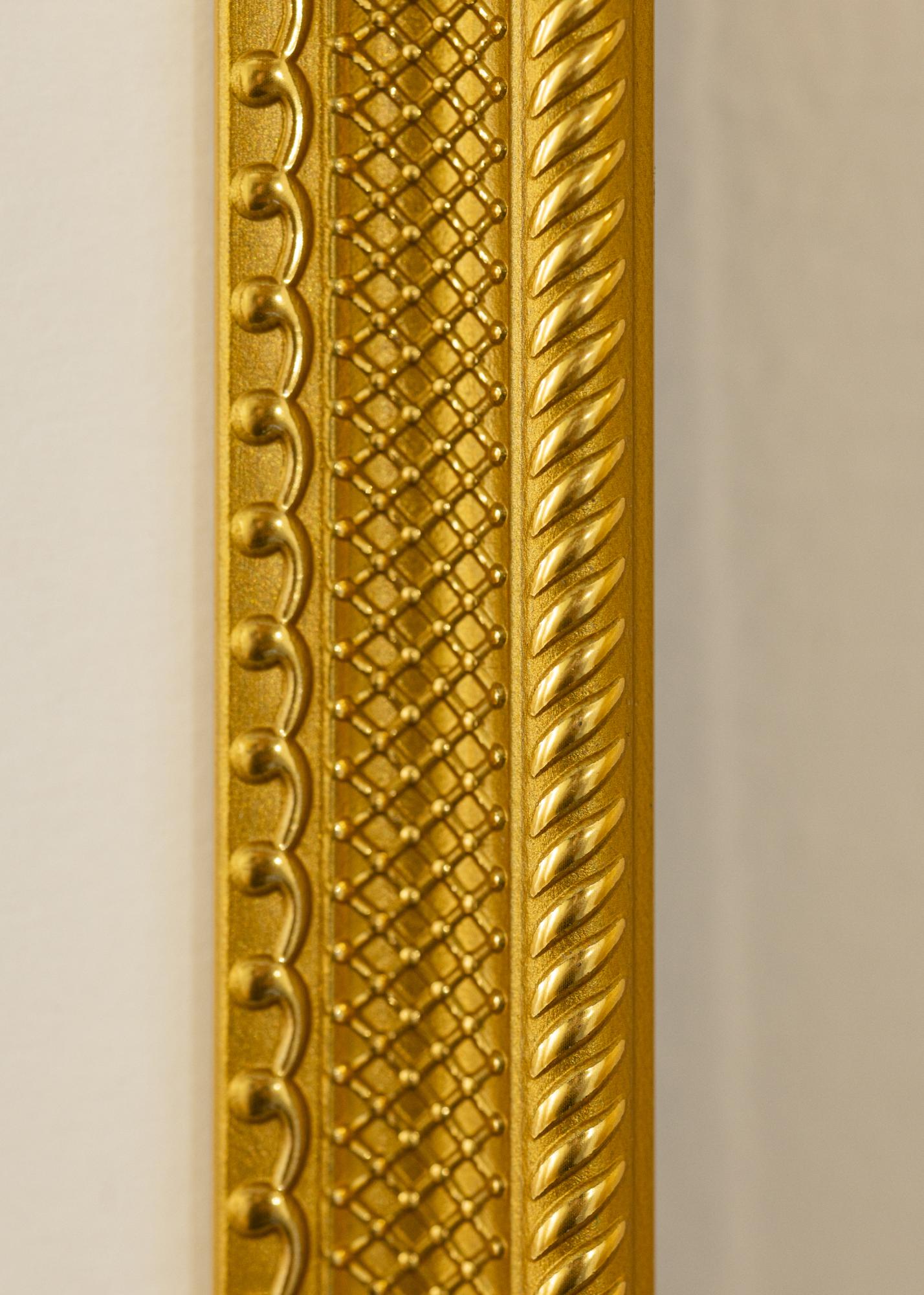 Dieser elegante Fotorahmen in Gold ist eine perfekte Kombination aus klassischem Design und moderner Funktionalität. Mit seinen detaillierten Mustern entlang der Kanten und einer glänzenden Oberfläche verleiht er ein luxuriöses Gefühl, das jedes Kunstwerk oder Foto aufwertet. Der Rahmen ist aus Verbundmaterial gefertigt, was ihm sowohl Stärke als auch Leichtigkeit verleiht. Er ist für Motive in der Größe 40x60 cm ausgelegt, was ihn ideal macht, um Ihre liebsten Erinnerungen zu präsentieren.