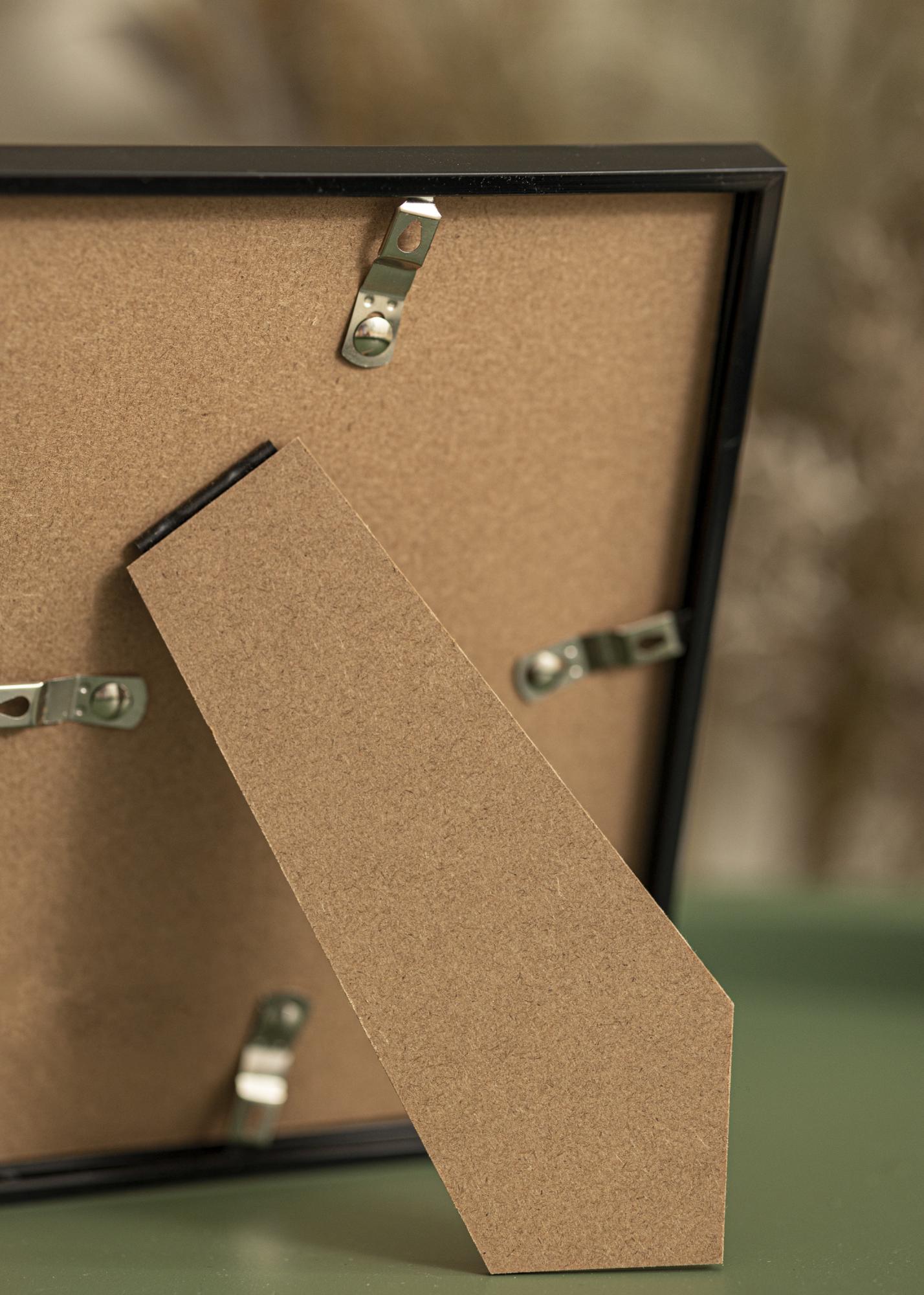 Dieser Bilderrahmen ist aus Kunststoff (Komposit) gefertigt und mit Acrylglas versehen. Acrylglas ist ein Kunststoffglas, das leicht und bruchsicher ist. Die Rückwand des Bilderrahmens besteht aus MDF. Um die Rückwand zu lösen, werden einfach die Drehklammern, die die Rückwand halten, etwas gedreht.