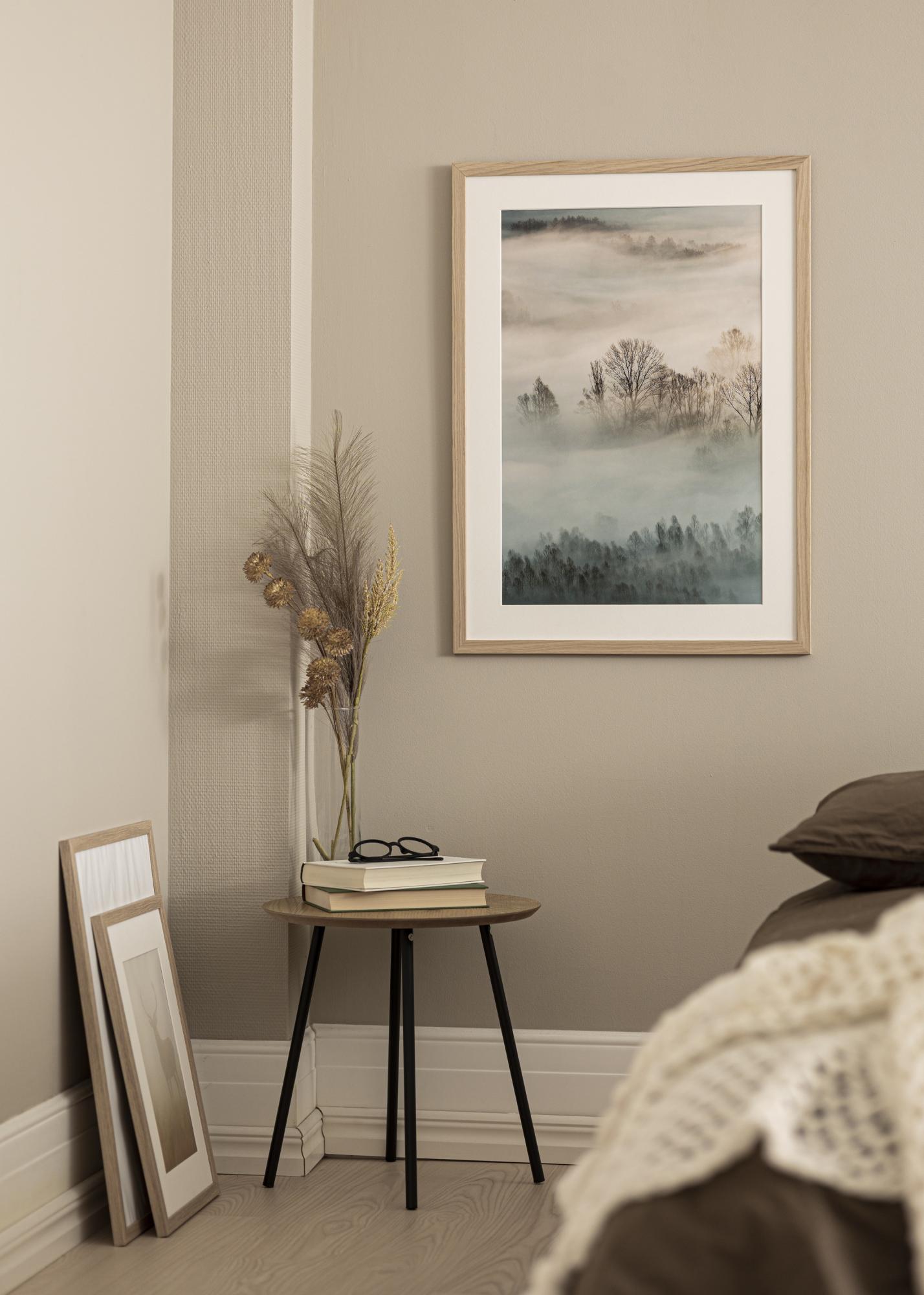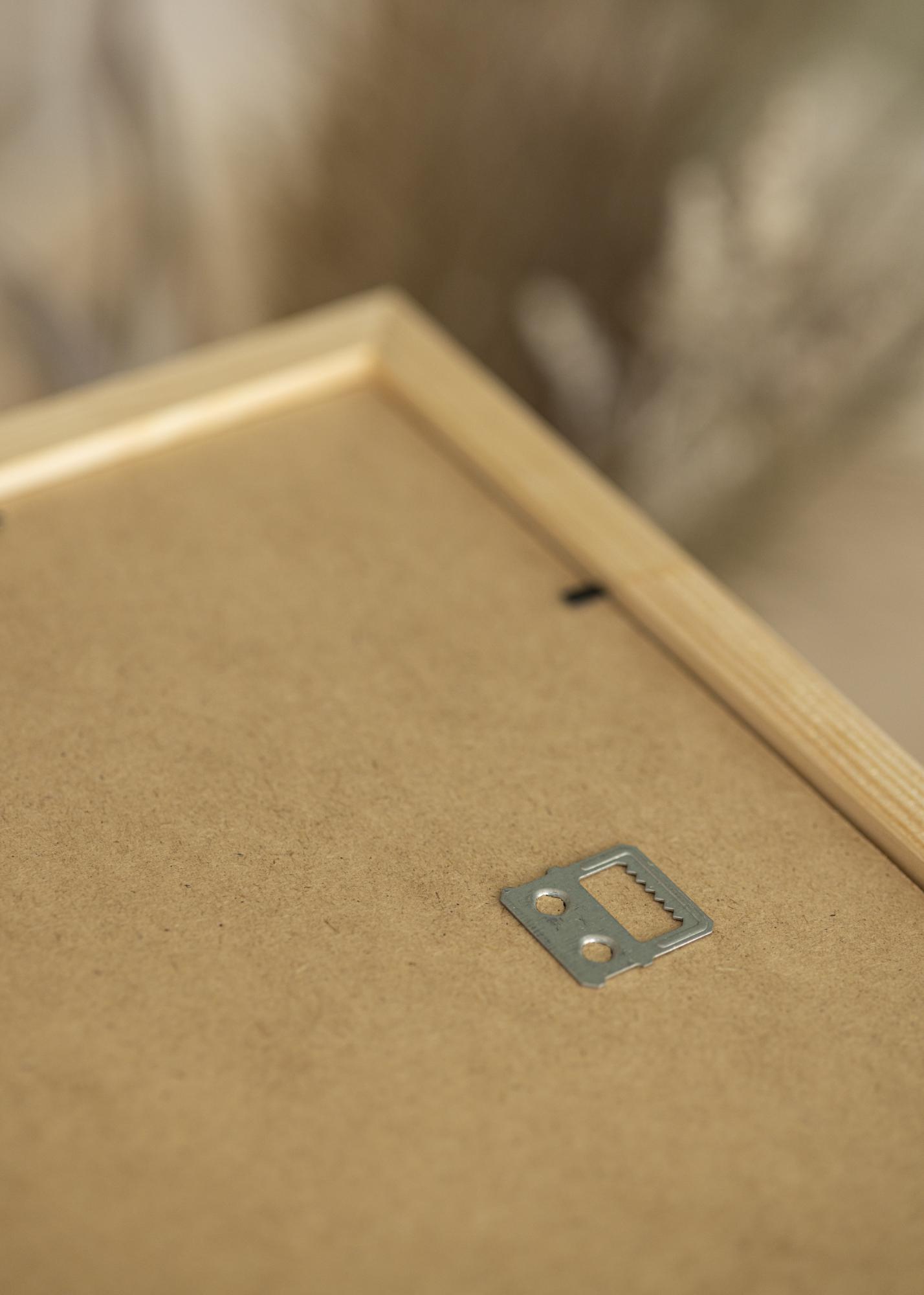 Der Rahmen hat ein schlichtes und modernes Design mit einem Rahmenprofil von 22 mm Breite und einer Tiefe von 15 mm, was ihm an der Wand eine markante Profilierung verleiht. Er ist aus robuster Kiefer gefertigt und in Schweden hergestellt, was für hohe Qualität und Langlebigkeit bürgt.