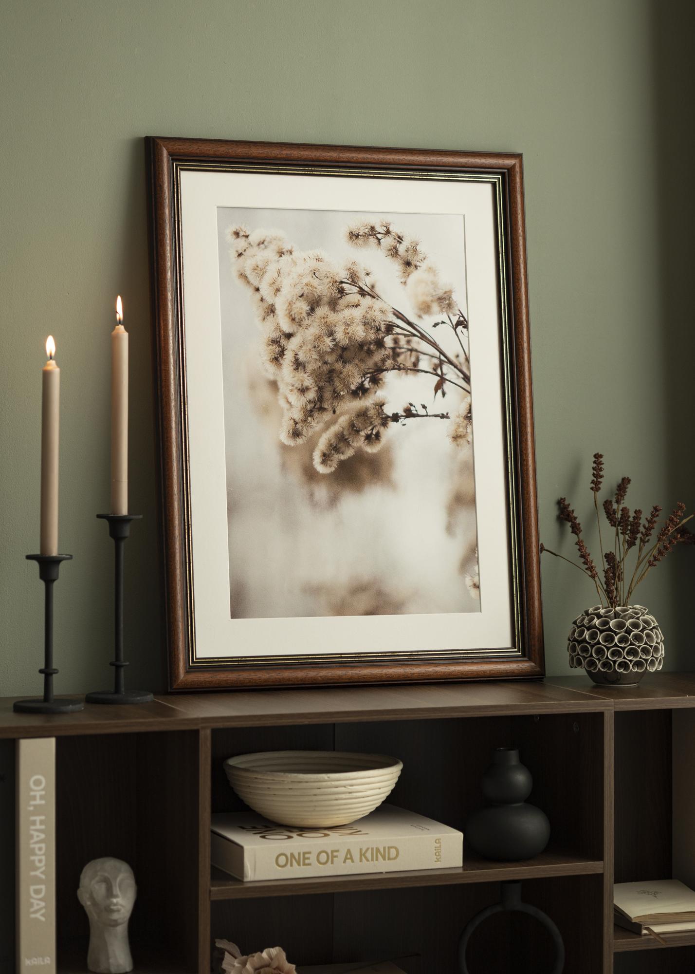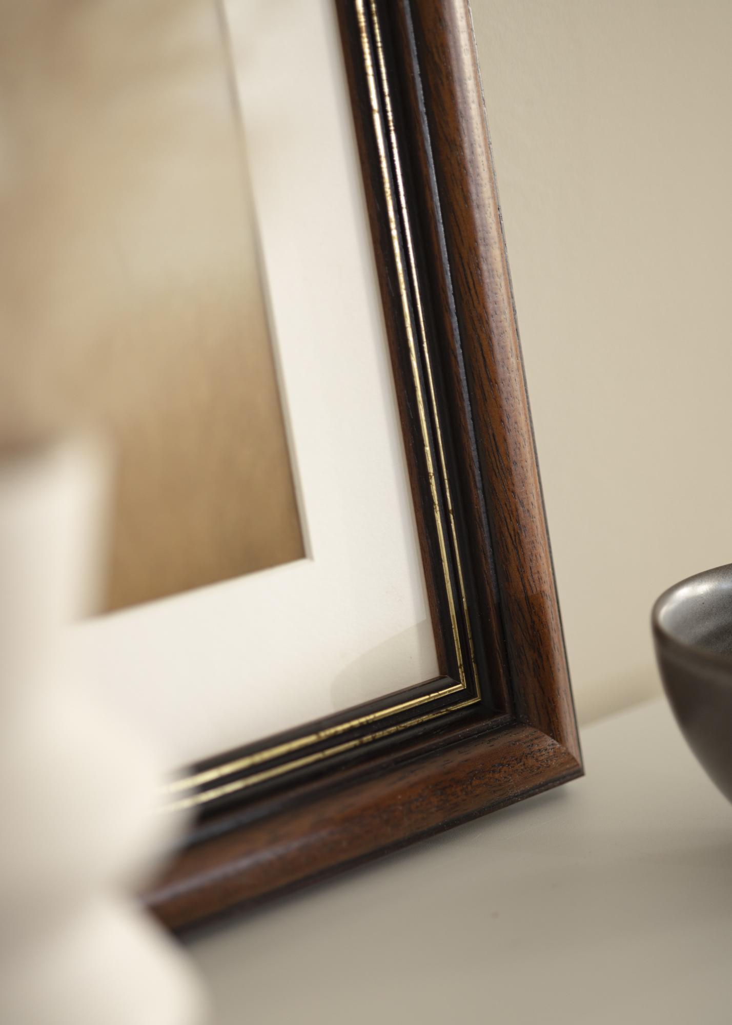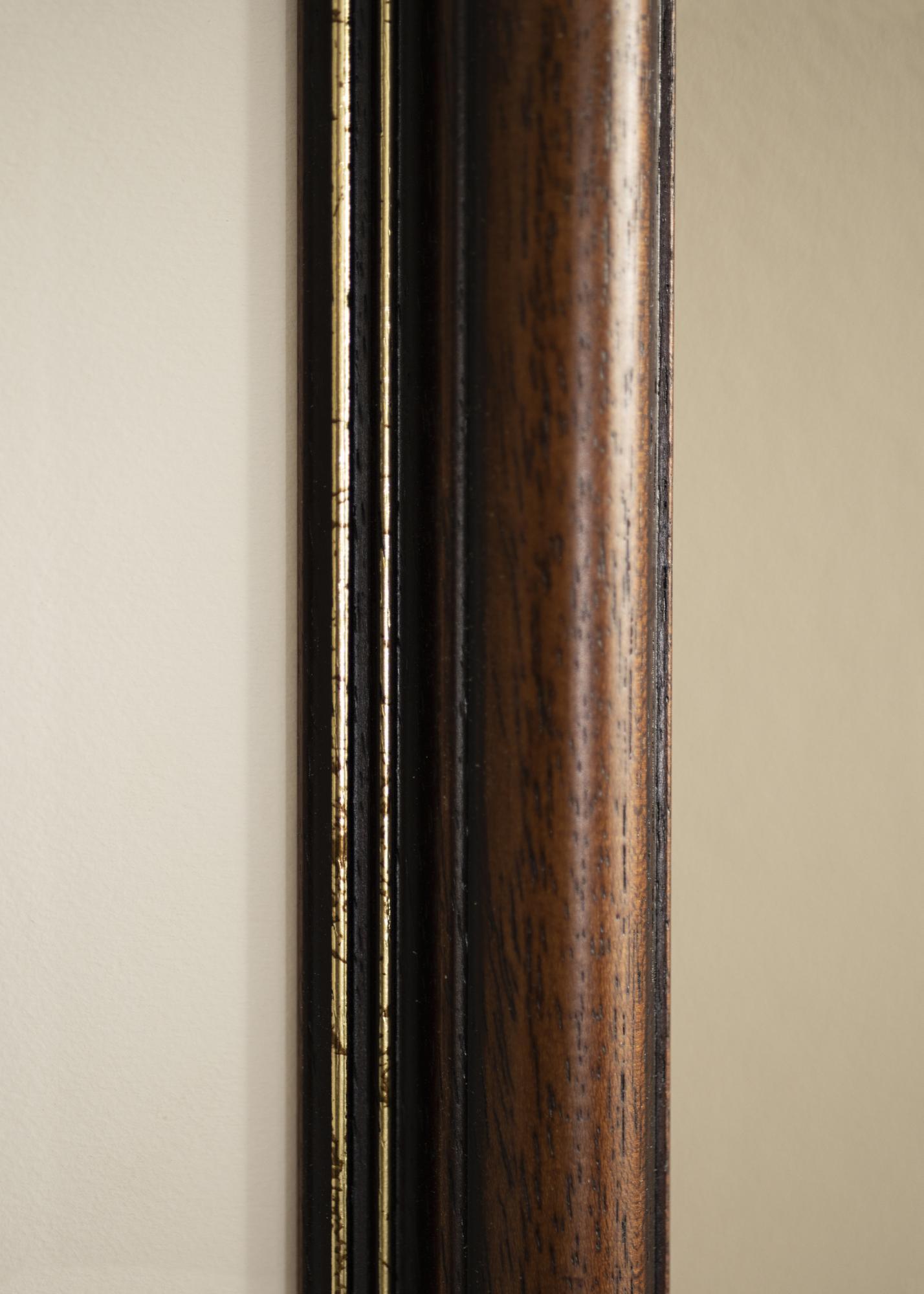 Der Bilderrahmen Old Retro Acrylglas ist ein schöner Holzrahmen der schwedischen Marke Galleri1. Der Bilderrahmen überzeugt durch sein klassisches Design sowie das elegante Profil mit schwarzen Einschlägen. An der Innenkante zum Bildausschnitt hin verlaufen zwei Goldlinien, die das Motiv einmal mehr stilsicher einrahmen. Der Holz- Bilderrahmen zeichnet sich zudem durch seinen leichten „Used-Look“ aus. Damit wird der eigene Charakter dieses stilvollen Bilderrahmens aus Holz unterstrichen, der das eingerahmte Bild keineswegs übertönt, sondern angemessen in Szene setzt. Gleichzeitig stellt dieser braune Bilderrahmen ein hübsches Wohnaccessoire dar, das deine Wand dekorativ schmückt.