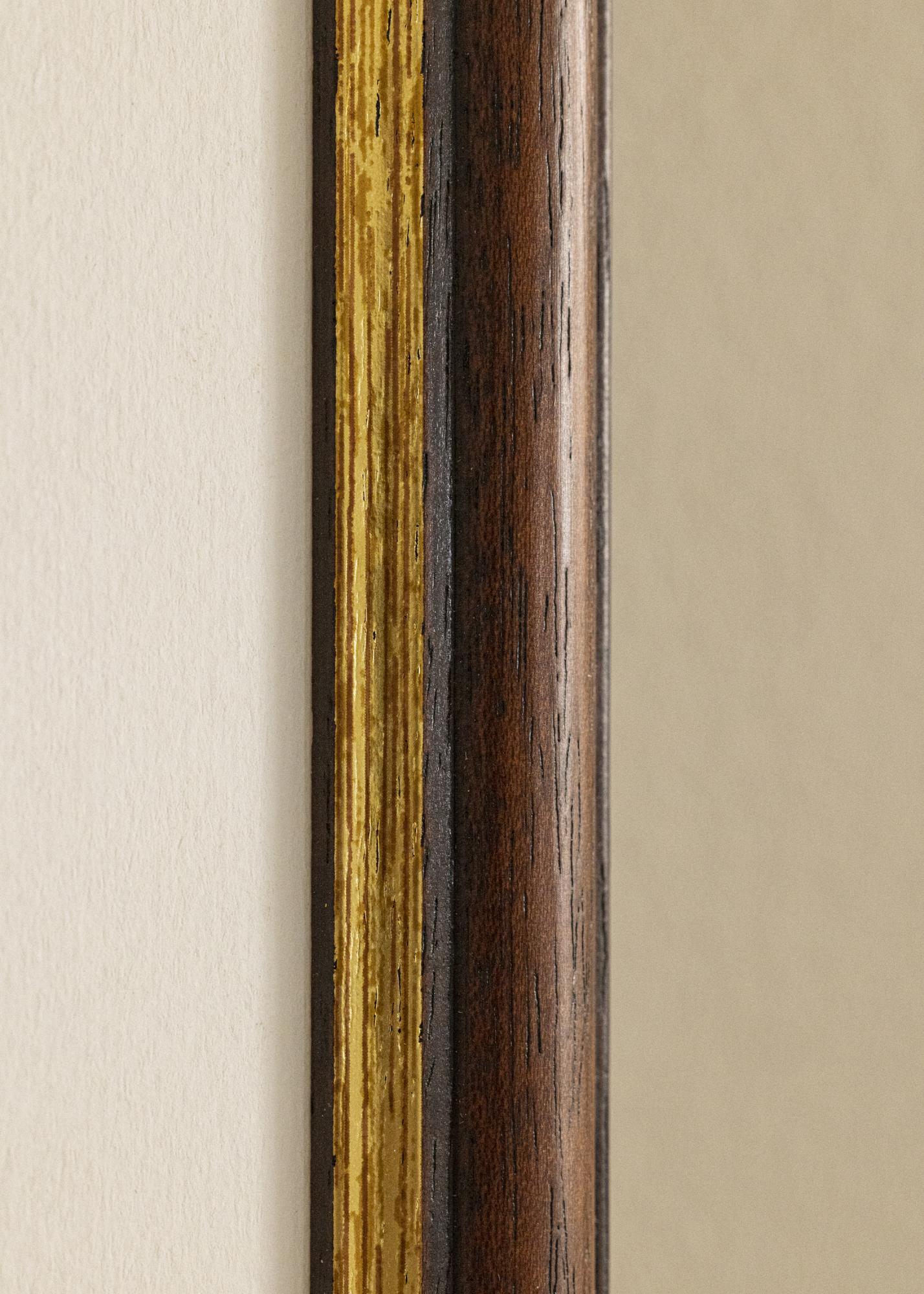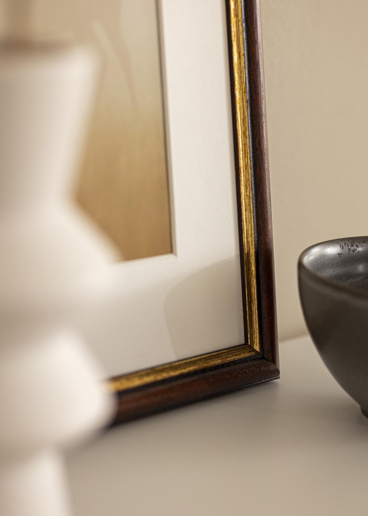Ein eingerahmtes Bild macht immer ein hübsches Einrichtungsdetail und einen schönen Wandschmuck aus, der das Zuhause noch wohnlicher macht. Dieser Bilderrahmen aus Abachi-Holz wird in Schweden gefertigt und überzeugt durch seinen warmen Braunton. Die braune Farbnuance wird von einer eleganten Goldlinie am Bildausschnitt ergänzt, die dem Bilderrahmen einen edlen Ausdruck verleiht und zu dem ansprechenden, klassischen Gesamteindruck dieses Holz-Bilderrahmens beiträgt. Das klassische Design des Rahmens passt zu den allermeisten Bildmotiven, ob Foto, Gemälde, Poster Kunstdruck oder sonstiges Bild. Als Fotorahmen kann mit diesem Rahmen ein spannender Kontrast erzeugt werden.