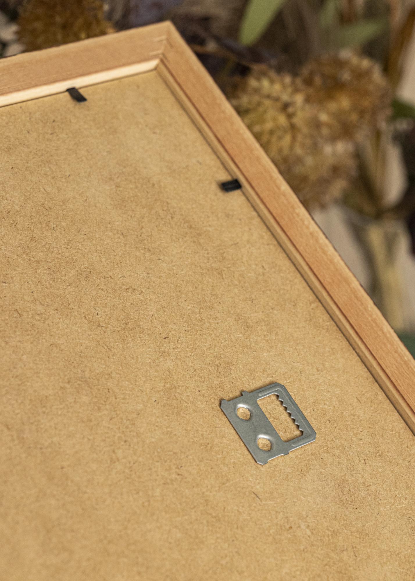 Der Bilderrahmen ist mit Wandhalterungen für die Bildaufhängung im Hoch- oder Querformat versehen. Ausgestattet ist der Bilderrahmen mit Acrylglas. Acrylglas ist ein Kunststoffglas, das leichter und bruchfester als echtes Glas ist und damit entscheidende Vorteile bietet, gerade wenn es um Bilderrahmen und die Bildaufhängung an der Wand geht. Zum Schutz des Acrylglases wird der Bilderrahmen mit einer Plastikfolie geliefert, die vor Gebrauch des Rahmens einfach abgezogen werden kann. Um das Bild einzulegen, werden die kleinen Stifte, die die Rückwand auf der Rückseite des Bilderrahmens halten, nach oben gebogen.
