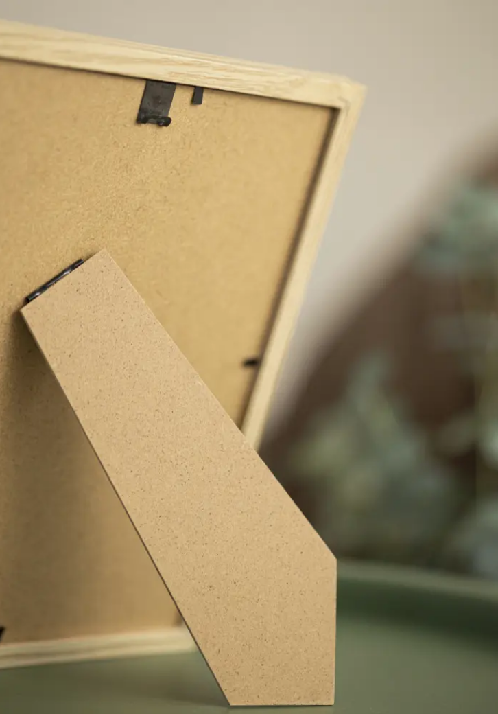 Dieser Bilderrahmen in Eiche-Optik ist mit Acrylglas ausgestattet, das leicht und zugleich bruchfest ist. Bild und Passepartout werden einfach in den Rahmen eingelegt. Dafür werden die Stifte, die die Rückwand halten, nach oben gebogen, die Rückwand gelöst und das, was eingerahmt werden soll, wird eingelegt.