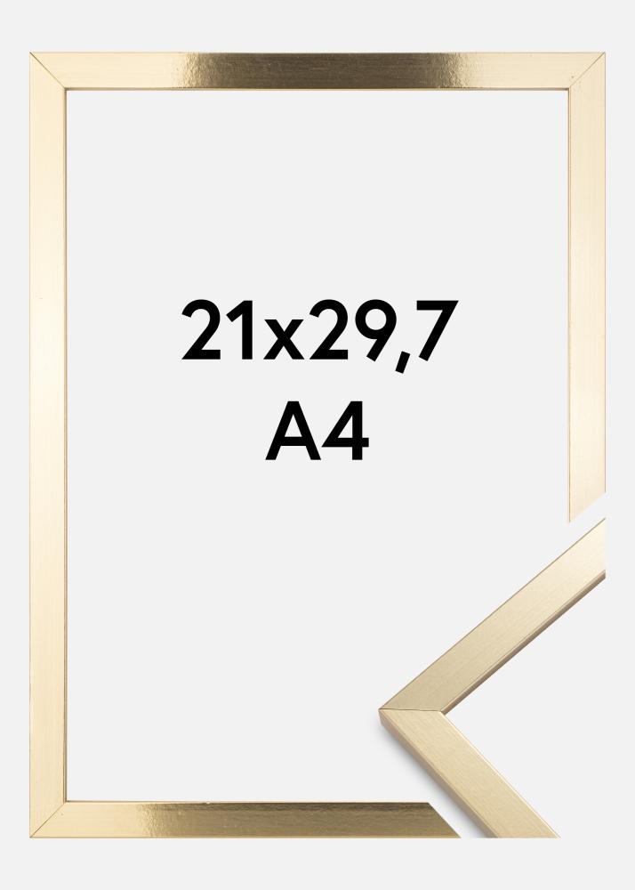 Erstellen Sie eine elegante Bildergalerie mit unserem stilvollen, goldenen Rahmen, perfekt um Ihre Lieblingskunstwerke oder Fotos hervorzuheben. Dieser Bilderrahmen in der Größe 21x29,7 cm (A4) ist ein raffiniertes Detail, das jedem Raum einen Hauch von Luxus verleiht. Mit seiner glänzenden, goldenen Oberfläche und glatten Textur wird er zum sofortigen Blickfang an Ihrer Wand.