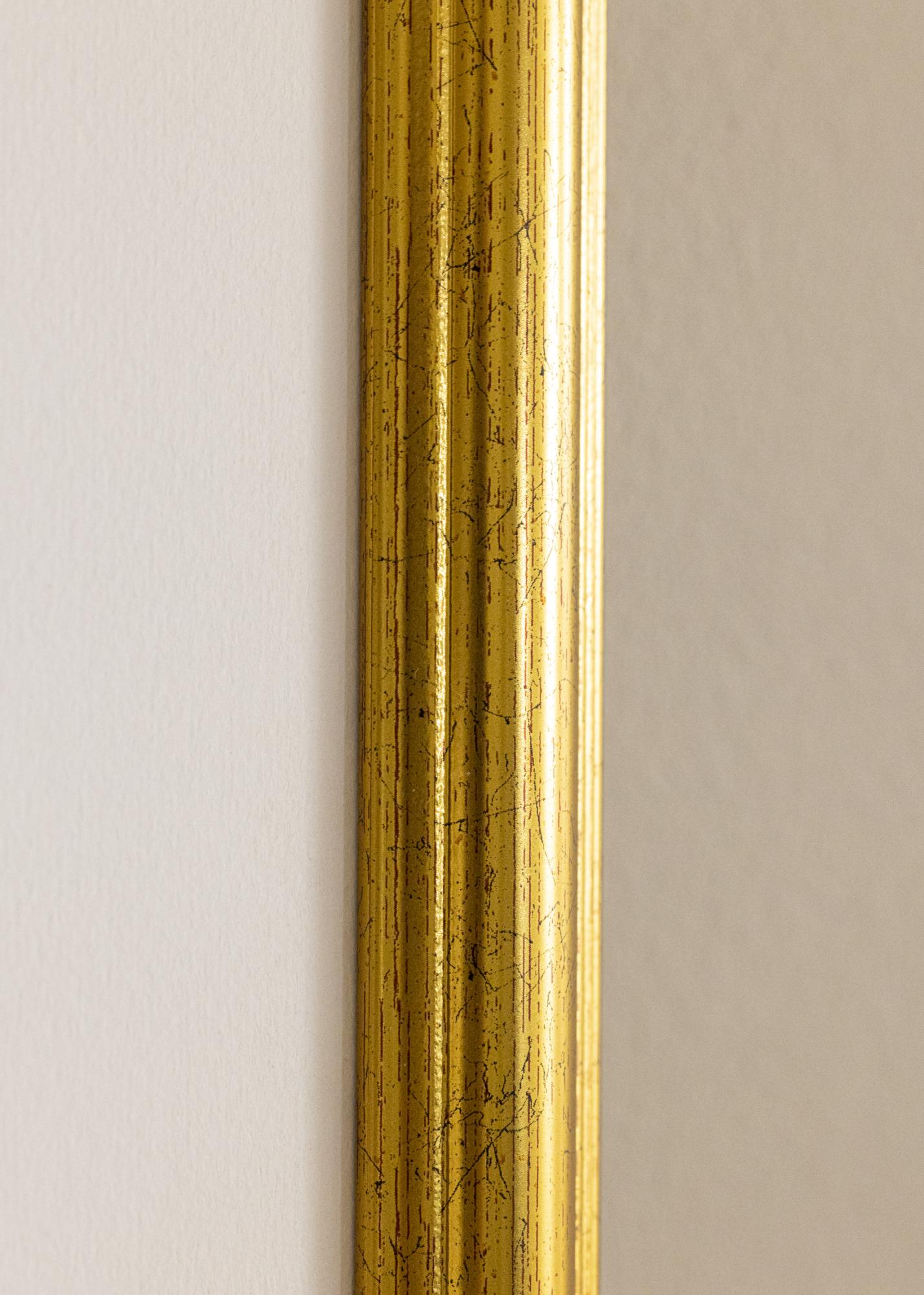 Dieser schöne goldene Bilderrahmen zeichnet sich durch sein edles Design aus, das einen Hauch von Luxus, von schlichter Eleganz verbreitet. Die dekorative Rahmenleiste mit einer Breite von 31 mm trägt das ihre dazu bei. Das glänzende, goldfarbene Finish des Bilderrahmens besitzt diskrete rot gesprenkelte Einschläge, die den reizenden Charme dieses Bilderrahmens untermauern und für eine Art Used-Look sorgen. Dieser wirklich dekorative Bilderrahmen lässt sich auch wunderbar als Fotorahmen verwenden, z.B. für Foto-Vergrößerungen oder persönliche Fotoposter und Posterprints. Ein stilvoller, eleganter Bilderrahmen, der jedes Motiv optimal in Szene setzt, ob als einziger Wandschmuck oder zusammen mit mehreren Bildern als individuelle Bilderwand. Eignet sich auch hervorragend als Bilderrahmen für ein persönliches Fotogeschenk für besondere Anlässe.