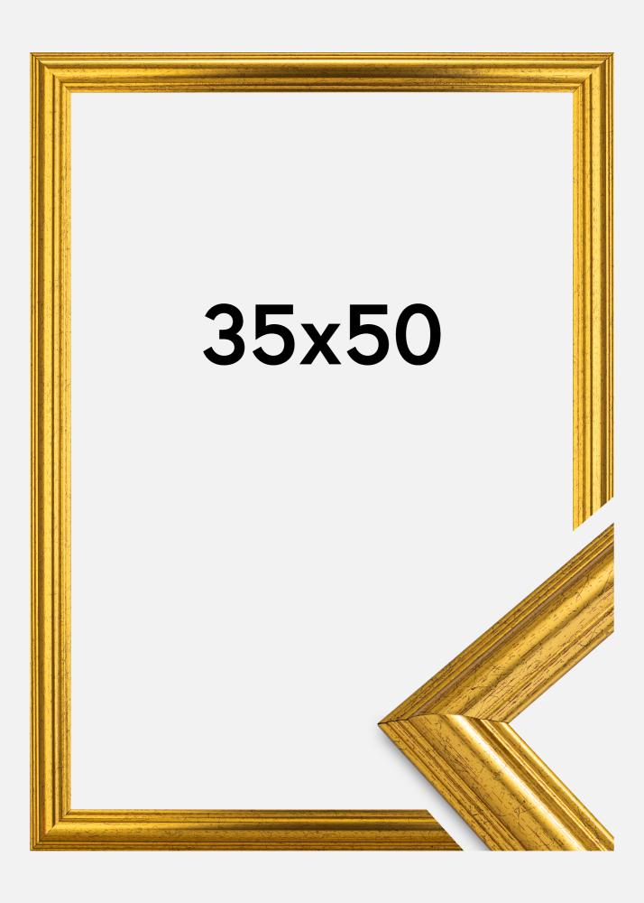Dieser schöne goldene Bilderrahmen zeichnet sich durch sein edles Design aus, das einen Hauch von Luxus, von schlichter Eleganz verbreitet. Die dekorative Rahmenleiste mit einer Breite von 31 mm trägt das ihre dazu bei. Das glänzende, goldfarbene Finish des Bilderrahmens besitzt diskrete rot gesprenkelte Einschläge, die den reizenden Charme dieses Bilderrahmens untermauern und für eine Art Used-Look sorgen. Dieser wirklich dekorative Bilderrahmen lässt sich auch wunderbar als Fotorahmen verwenden, z.B. für Foto-Vergrößerungen oder persönliche Fotoposter und Posterprints. Ein stilvoller, eleganter Bilderrahmen, der jedes Motiv optimal in Szene setzt, ob als einziger Wandschmuck oder zusammen mit mehreren Bildern als individuelle Bilderwand. Eignet sich auch hervorragend als Bilderrahmen für ein persönliches Fotogeschenk für besondere Anlässe.