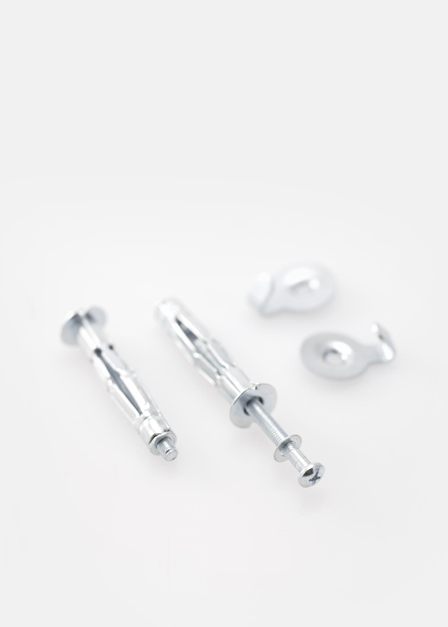 2 Hohlraumdübel und M5 Schrauben für 13 mm Gipswand. Die Nut des Hohlraumdübels eignet sich für 8 mm Schrauben.