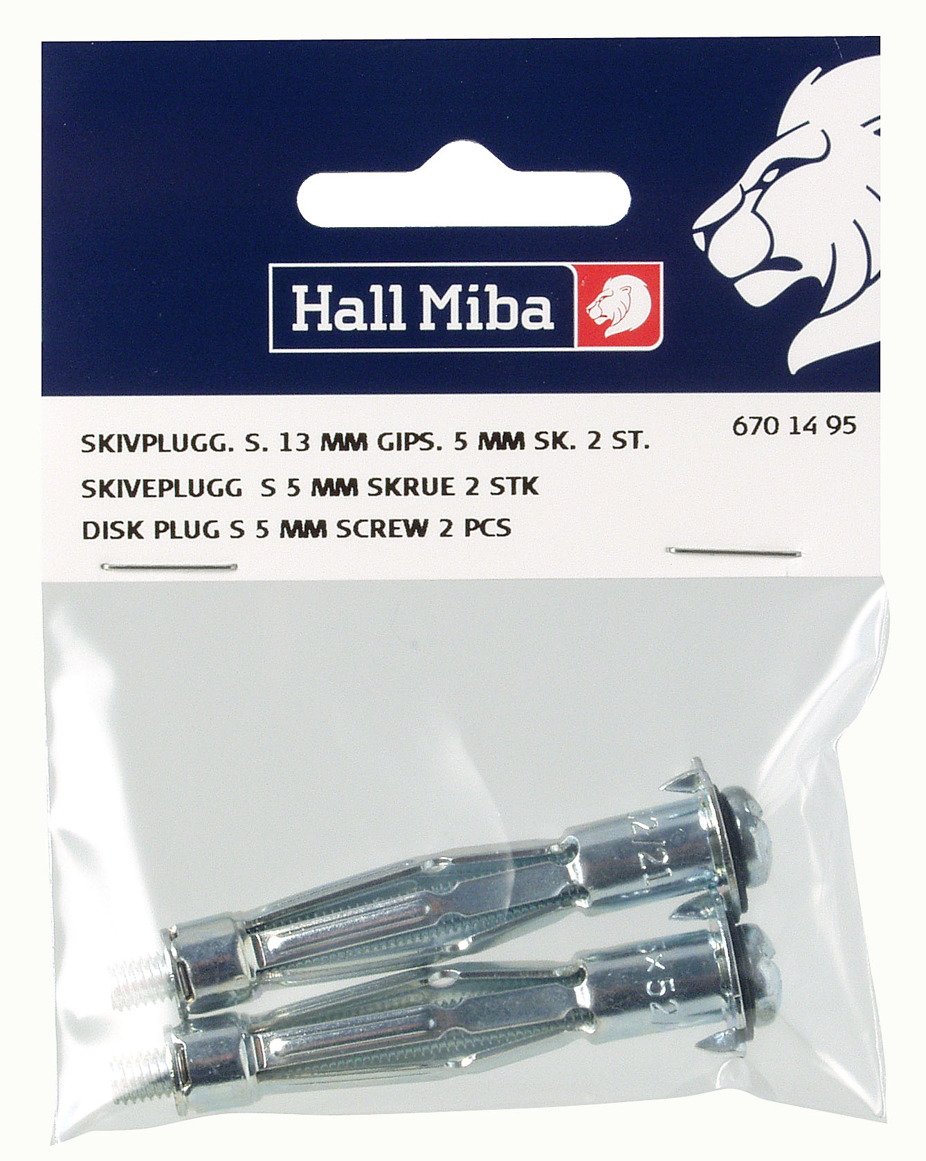 Art.-Nr.:2 Hohlraumdübel und M5 Schrauben für 13 mm Gipswand. Die Nut des Hohlraumdübels eignet sich für 8 mm Schrauben.