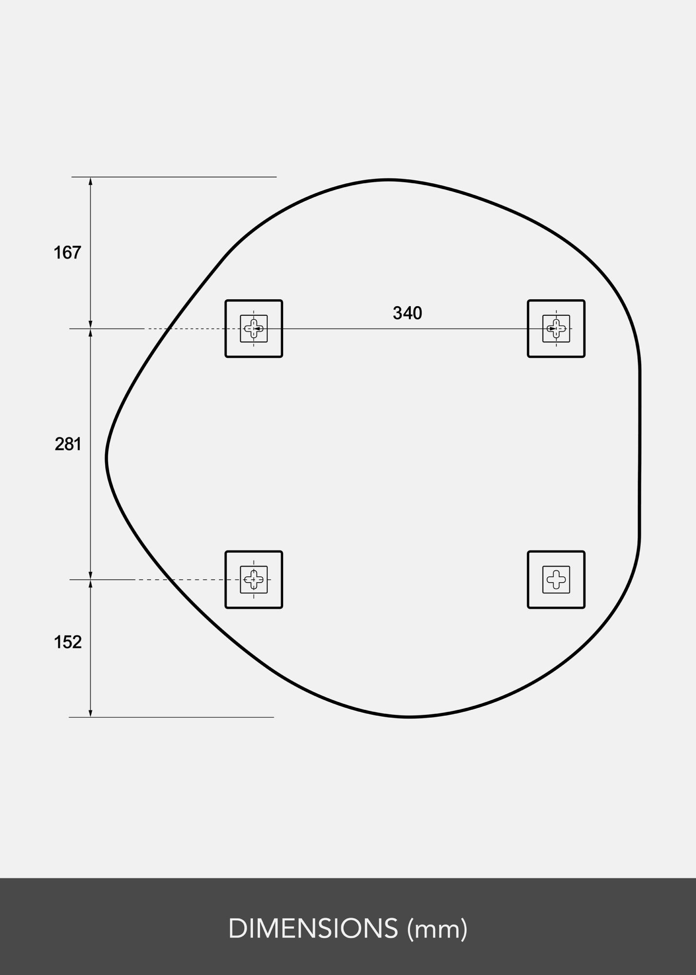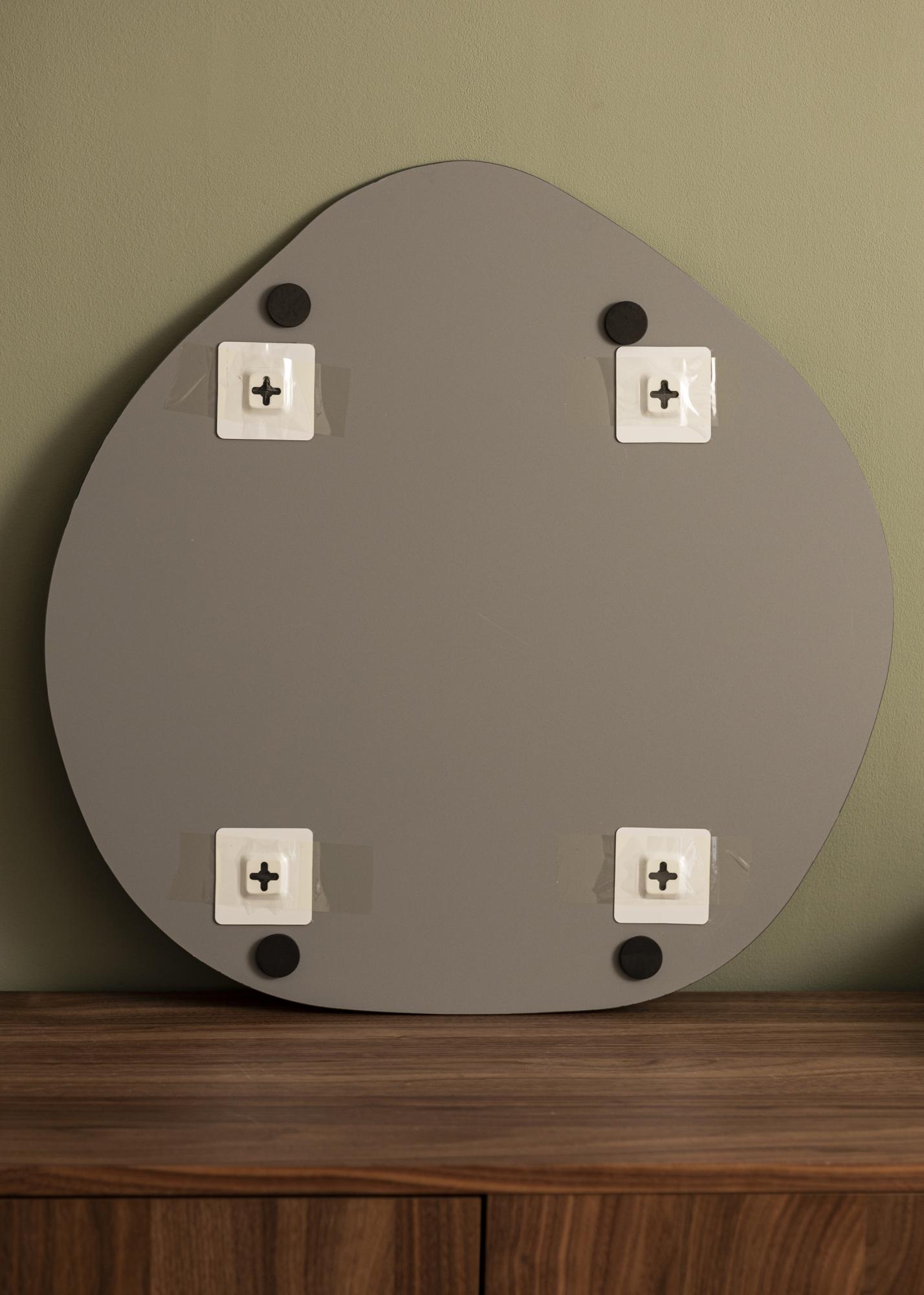 Entdecken Sie den einzigartigen Charme unseres asymmetrisch geformten Spiegels, ein echter Blickfang für jeden Raum. Mit seinen sanften Linien und modernem Design bietet dieser Spiegel die perfekte Balance zwischen Funktionalität und Stil. Die Maße von 60x60 cm machen ihn groß genug, um praktisch zu sein, während er gleichzeitig unauffällig an der Wand bleibt.