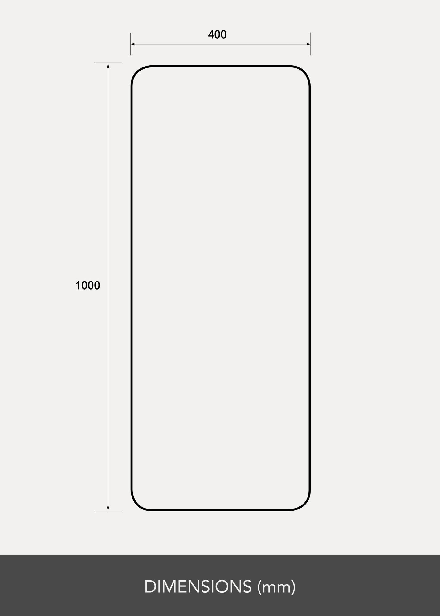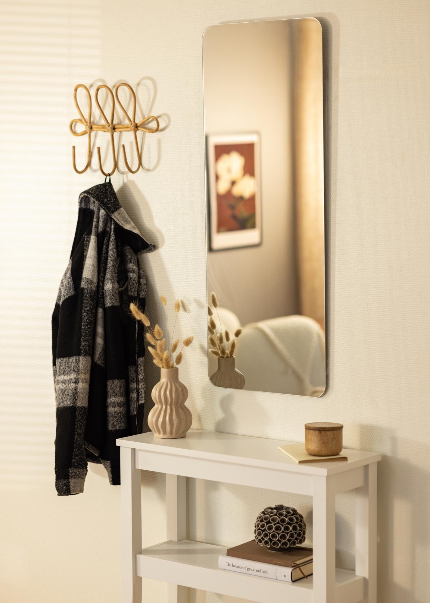 Entdecken Sie die stilvolle Eleganz unseres rechteckigen Spiegels, perfekt gestaltet, um jeden Raum in Ihrem Zuhause zu ergänzen. Mit seinen abgerundeten oberen Ecken schafft der Spiegel eine moderne und anspruchsvolle Atmosphäre, während er Ihrem Raum Licht und Weite verleiht. Die Abmessungen von 40x100 cm machen ihn zu einem praktischen und dekorativen Detail, das sowohl in der Diele als auch im Schlafzimmer gut zur Geltung kommt.