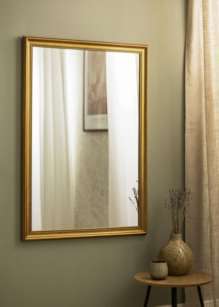 Rokoko ist eine Wohnspiegel-Serie von Estancia, die Spiegel mit schönen Rahmen im Rokoko-Stil enthält. Der goldfarbene Rahmen dieses Wandspiegels wirkt edel und sehr dekorativ. Farb- und Formgebung machen diesen Wohnspiegel zu einem tollen Einrichtungsaccessoire für Diele oder Flur, Schlafzimmer oder Wohnzimmer. Dieser Spiegel mit Goldrahmen ist in mehreren Größen erhältlich, sodass für jede Wand und jeden Raum ein passendes Modell dabei sein sollte. Der abgebildete Wohnspiegel hat die Größe 70x100 cm.